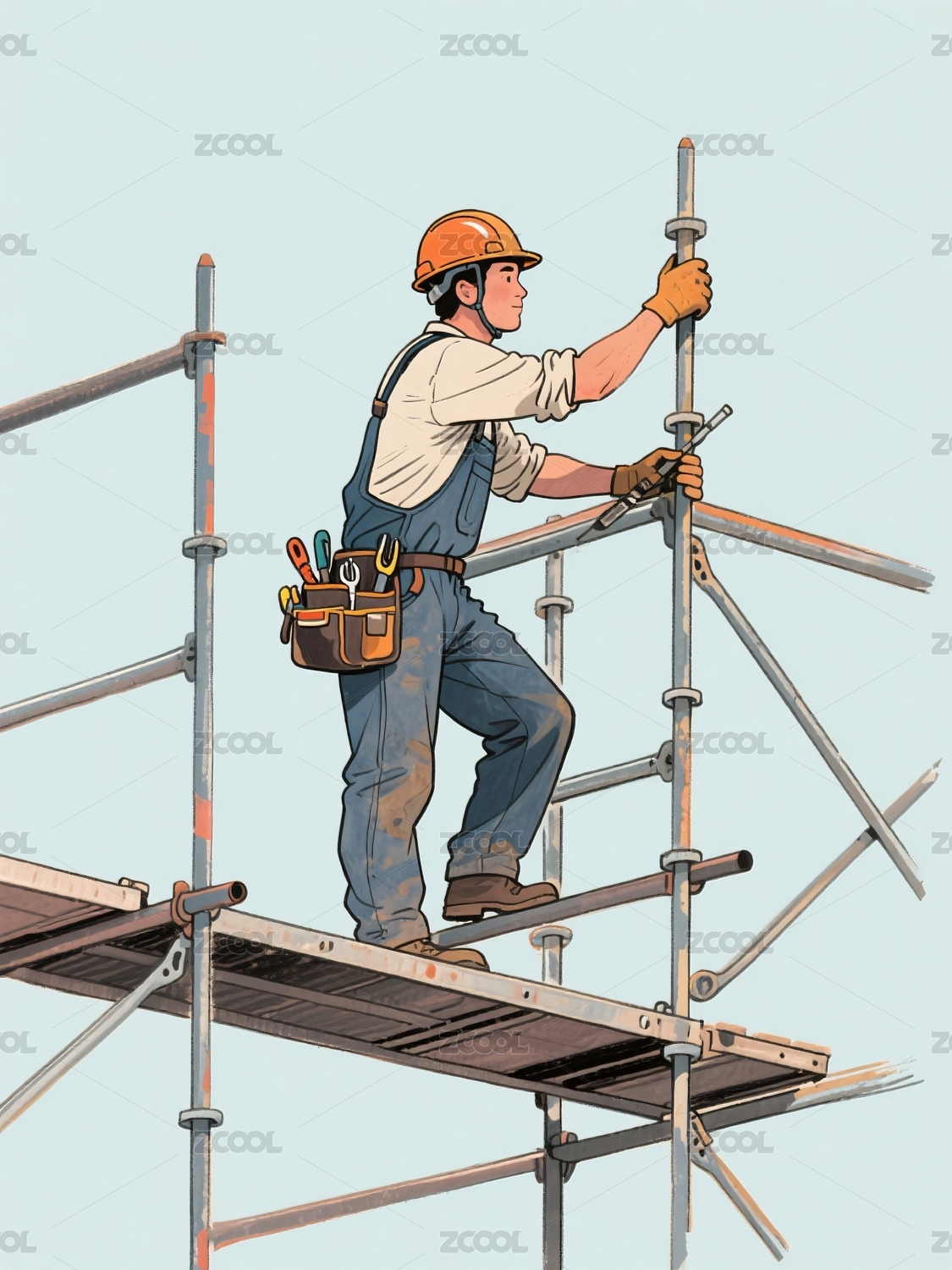 蓝色,身体,站立,建筑,工人,施工,结构,建造,楼梯,劳动
