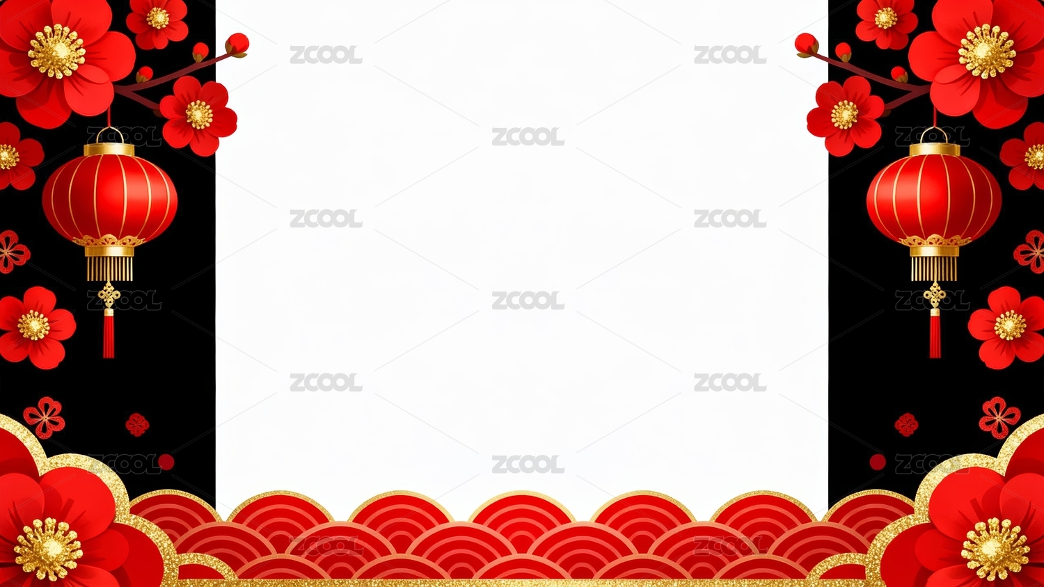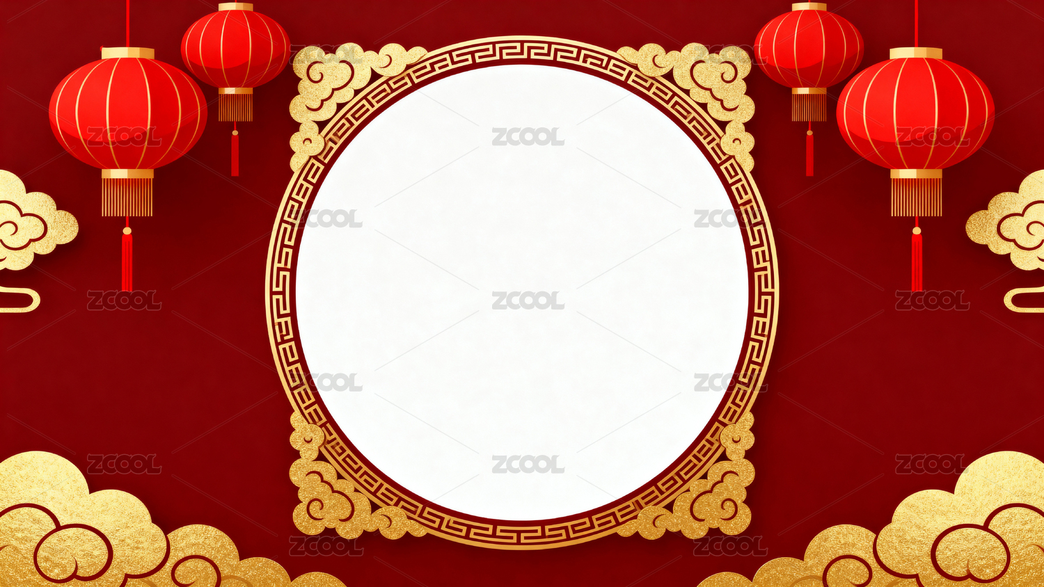 红色灯笼与金色边框装饰图案