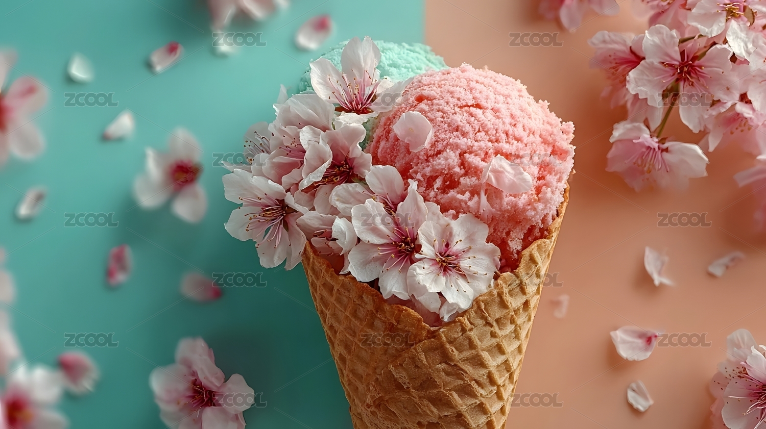 粉色,蓝色,背景,装饰,甜点,点心,花朵,花蕊,花瓣,花枝