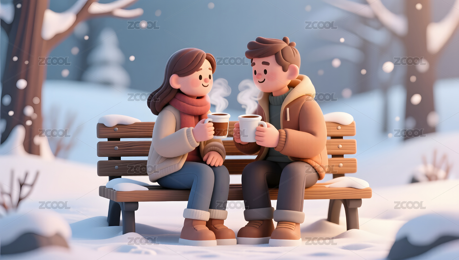 卡通,人物,帽子,围巾,外套,冬季,坐着,手套,眼睛,嘴巴