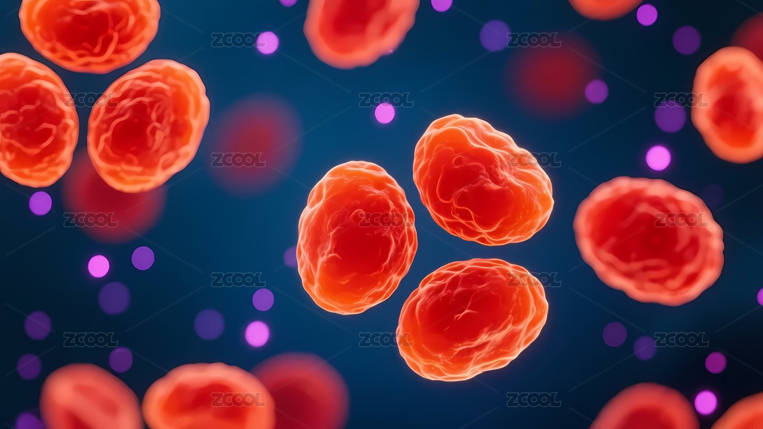 紫色,光点,微观,深蓝,橙红,球体,背景,散布,视觉,效果