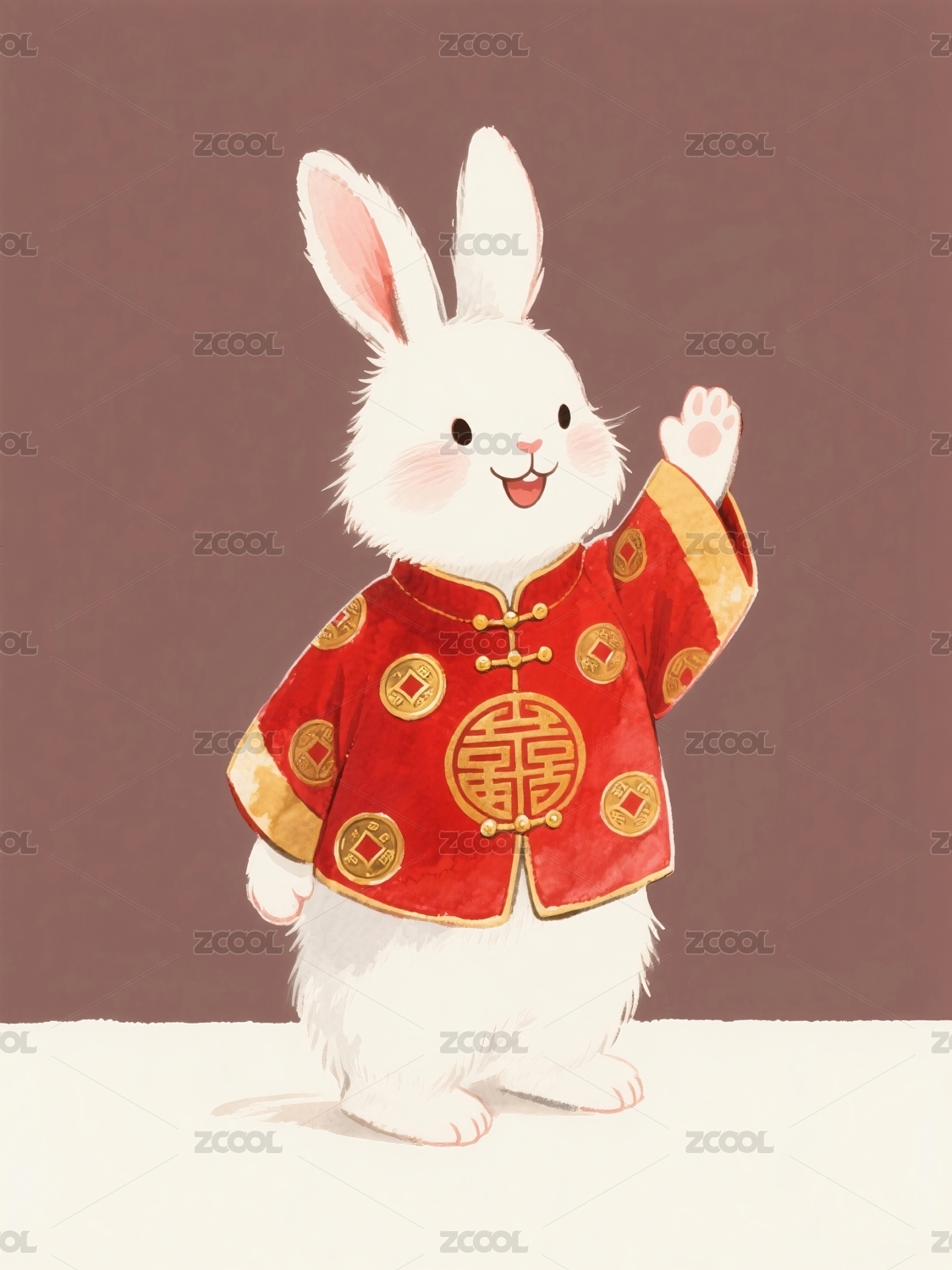 新年,微笑,人物,可爱,蓝色,传统,兔子,唐装,衣服,耳朵