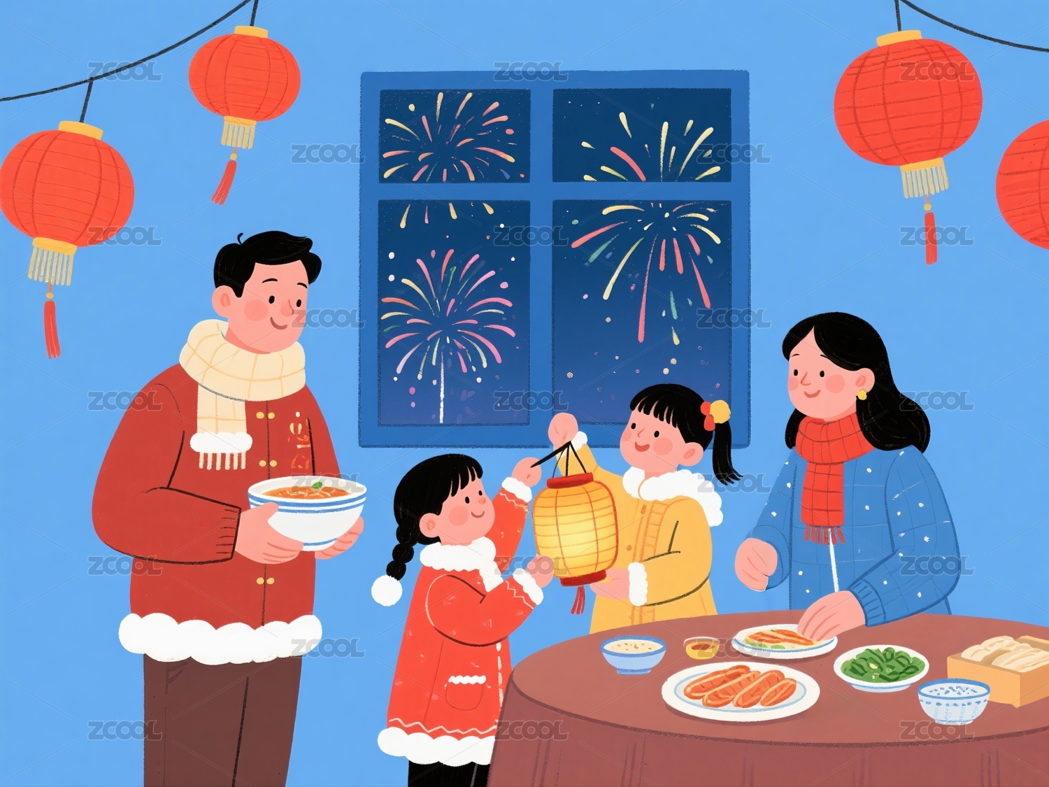 红色,黄色,灯笼,外套,蓝色,节日,庆祝,衣服,表情,黑色