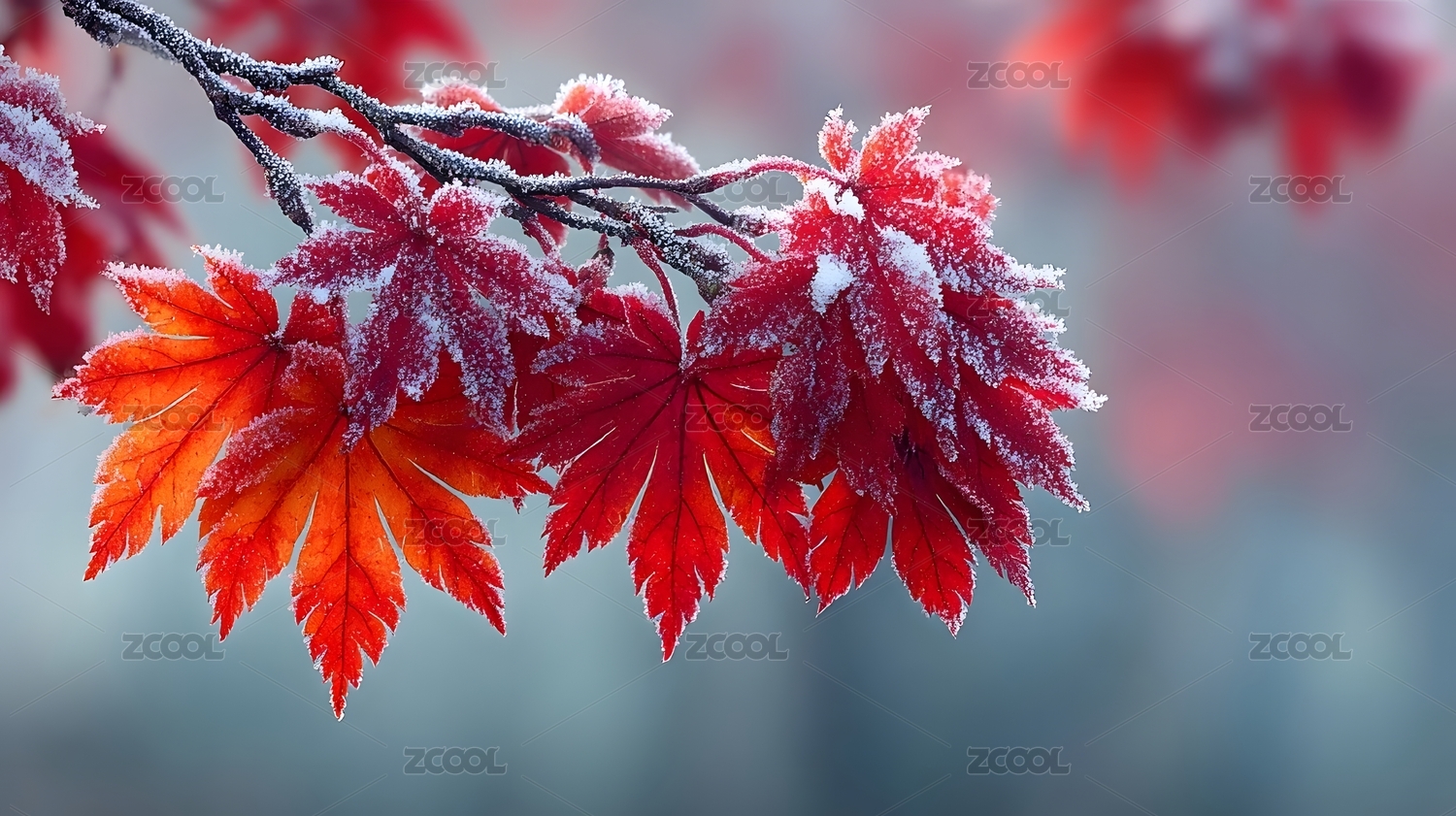 霜冻红叶主题