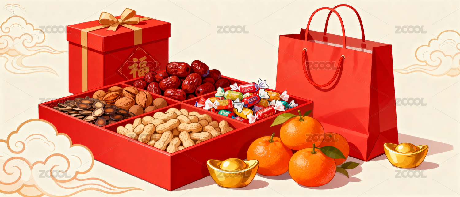 新年零食礼盒与购物袋