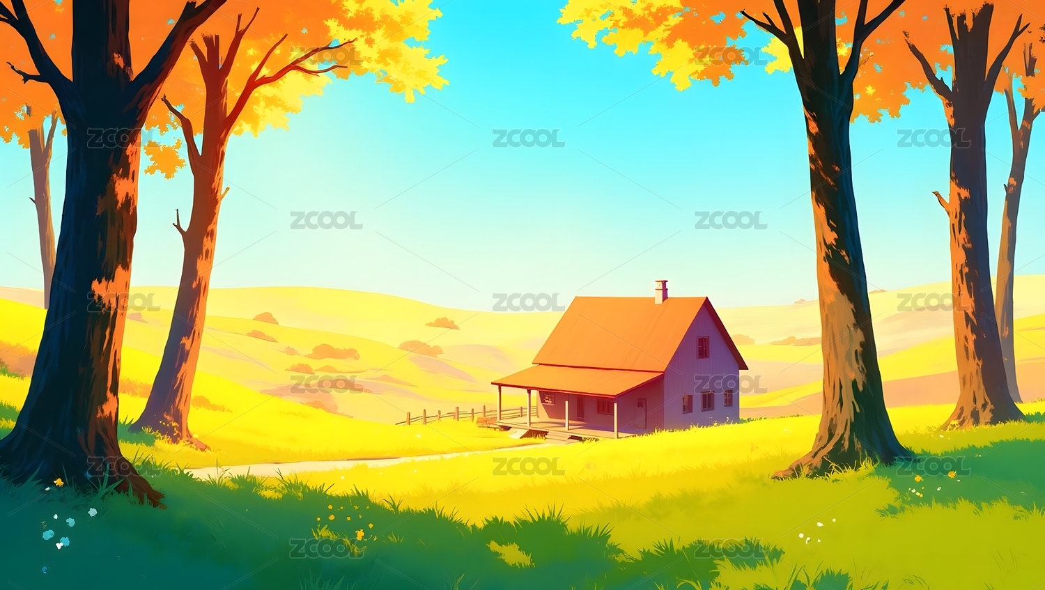 田园小屋插画风景
