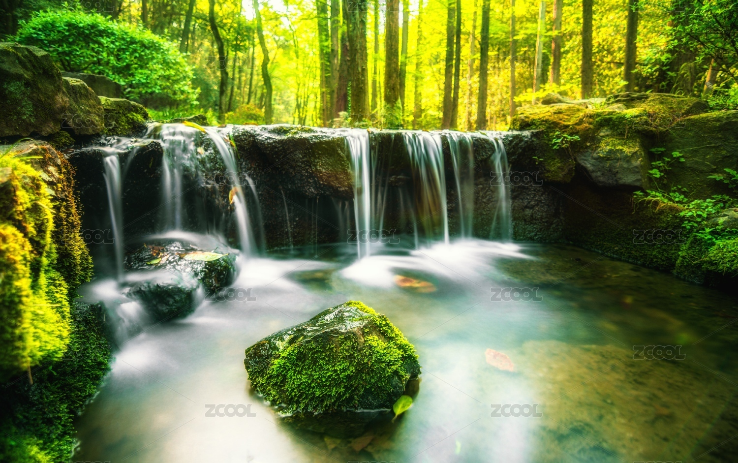 森林,溪流,自然,风景,长曝光,水流,岩石,苔藓,绿色,树木