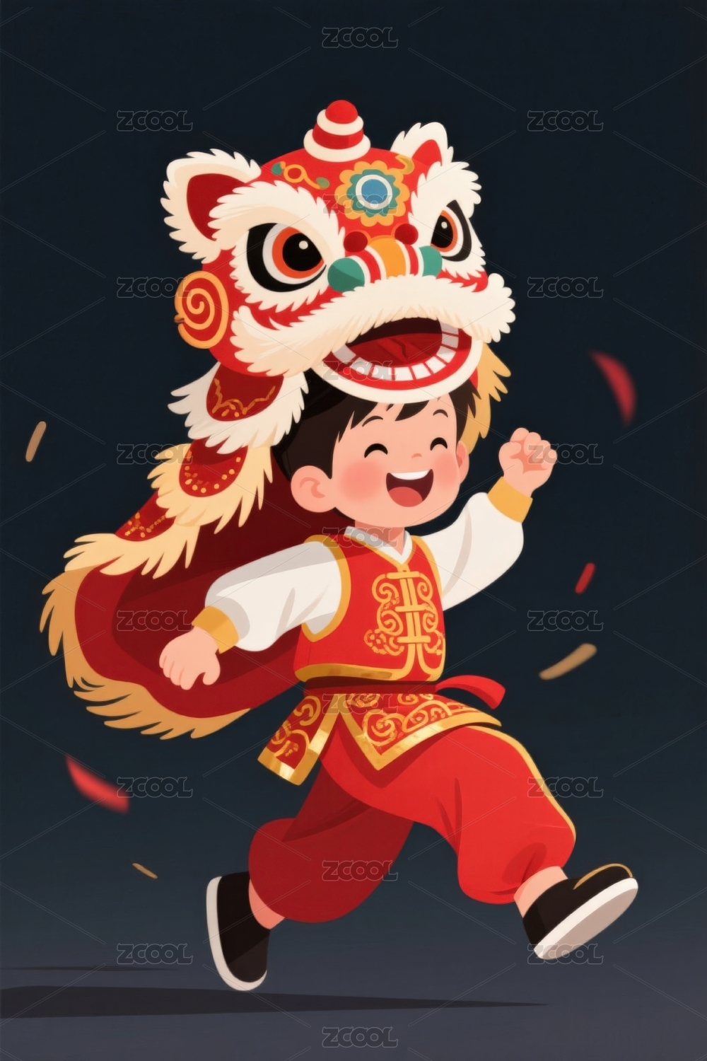 老虎,舞狮,动作,尾巴,表演,中国,传统,红色,眼睛,站立
