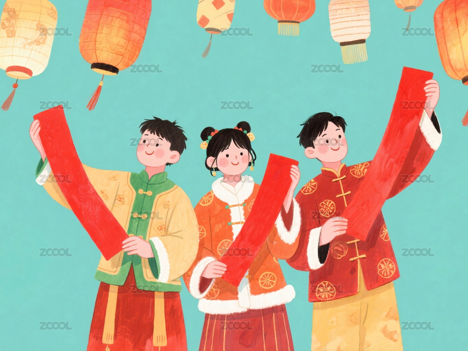 传统,红色,可爱,灯笼,黄色,节日,喜悦,灯光,服饰,微笑