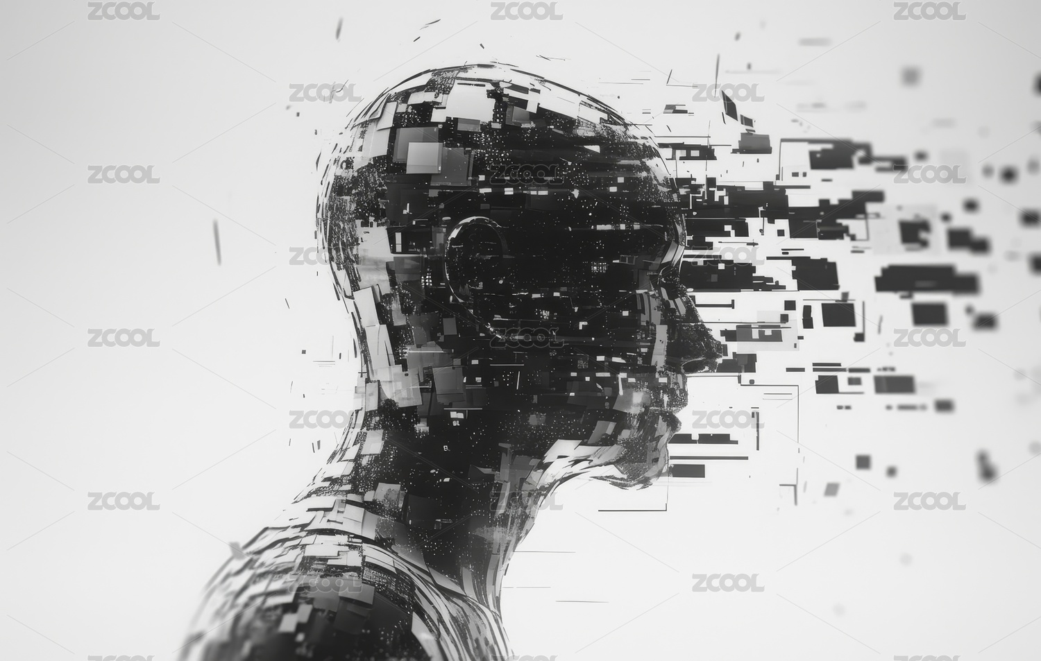科幻抽象蓝底人物头像信息碎块方块3D插画
