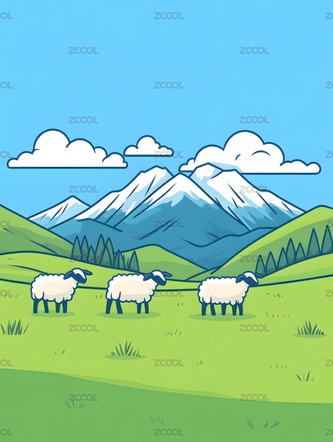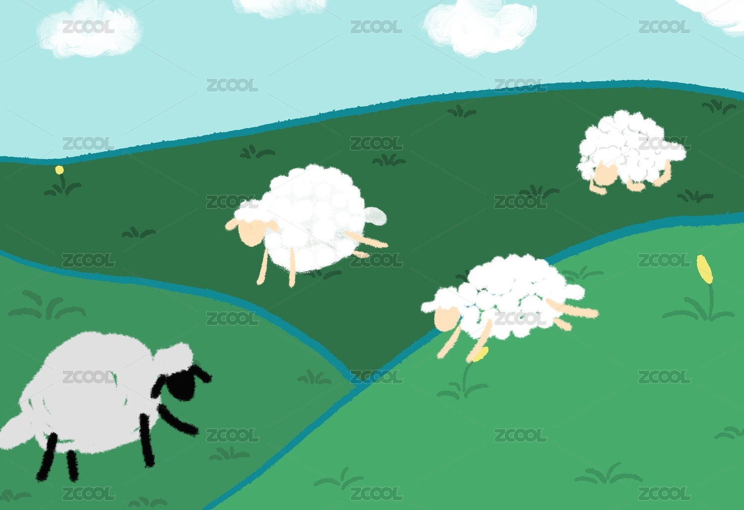 草地上的小羊卡通插画