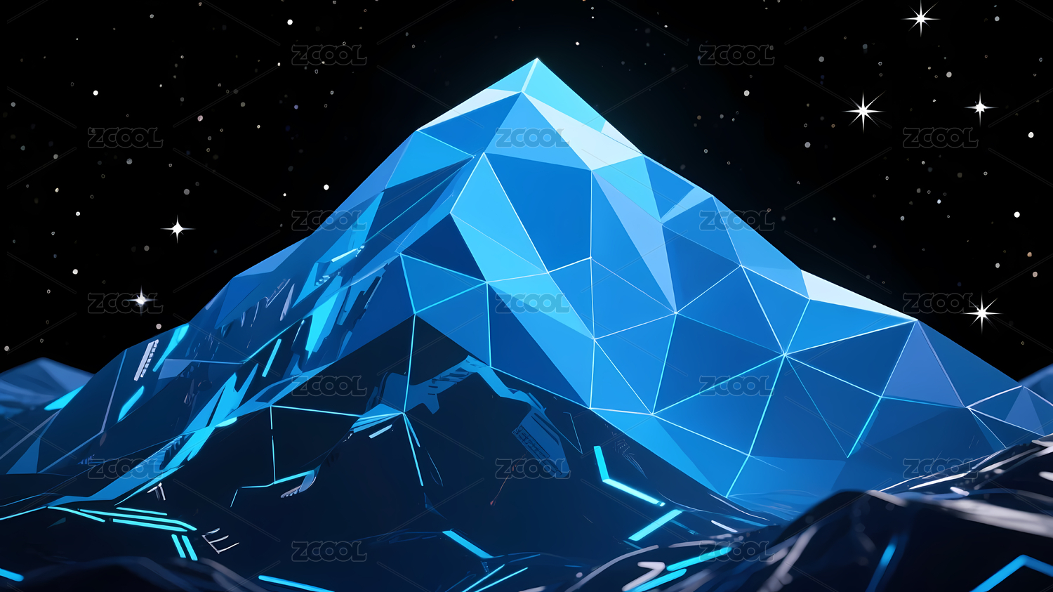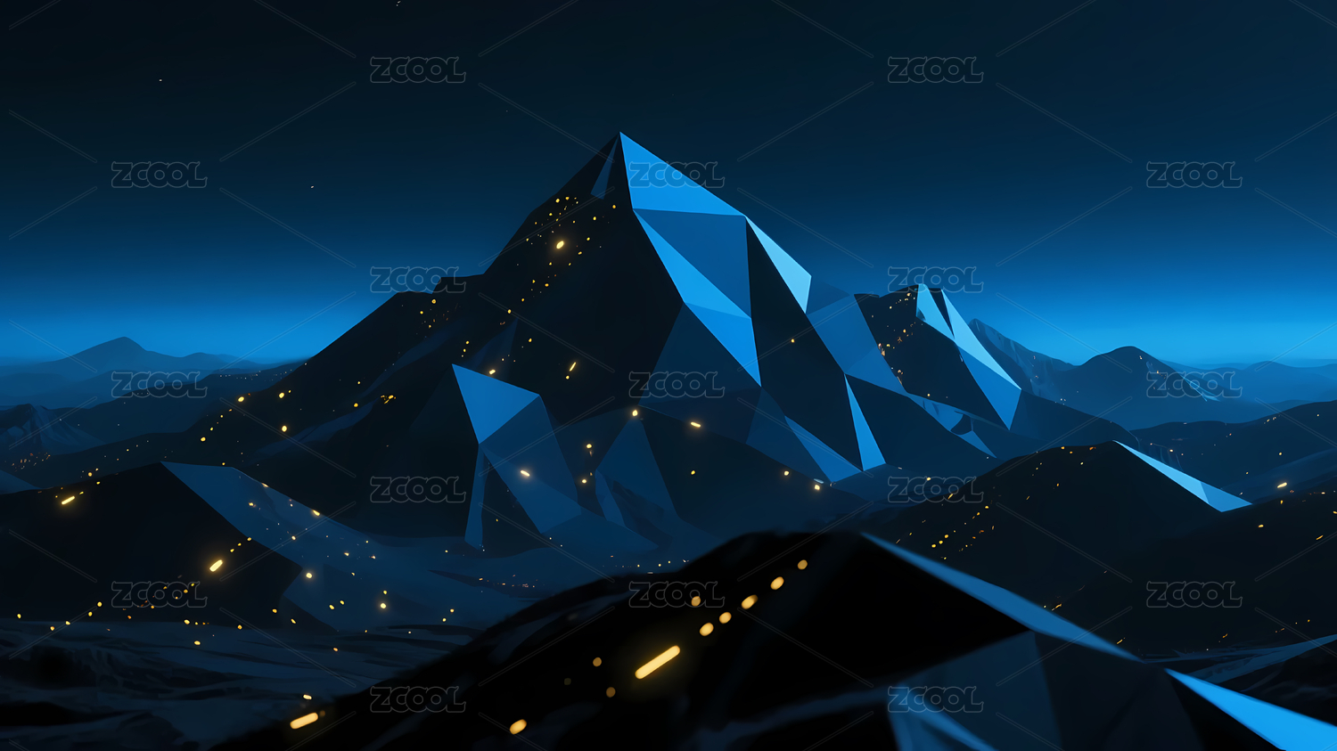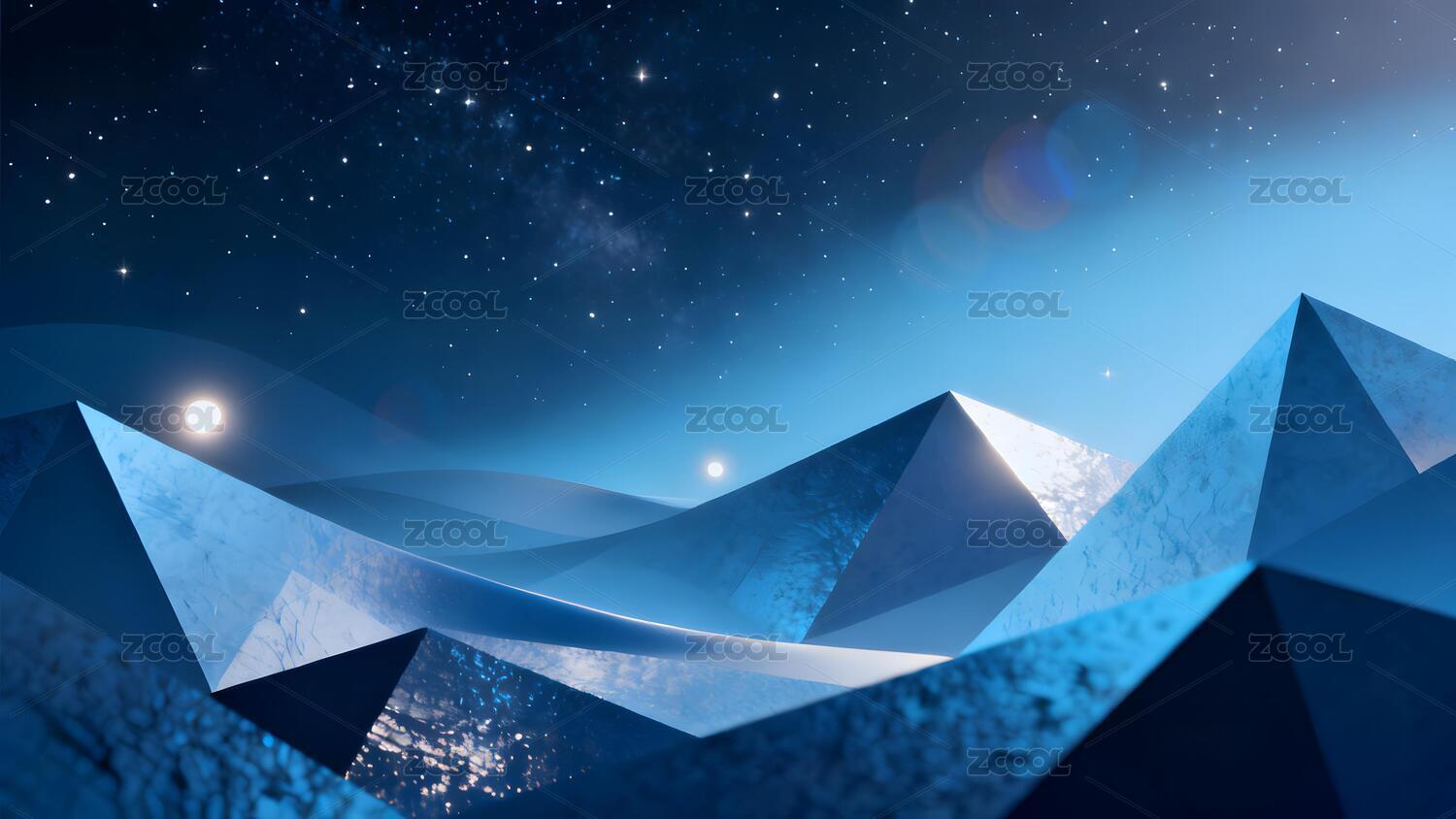 点缀,神秘,冷色,蓝色,未来,氛围,星空,深邃,山峰,多边形