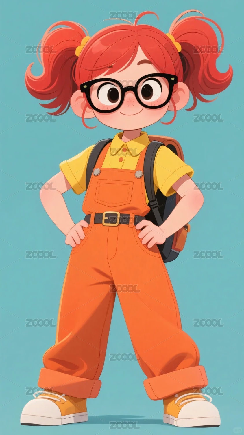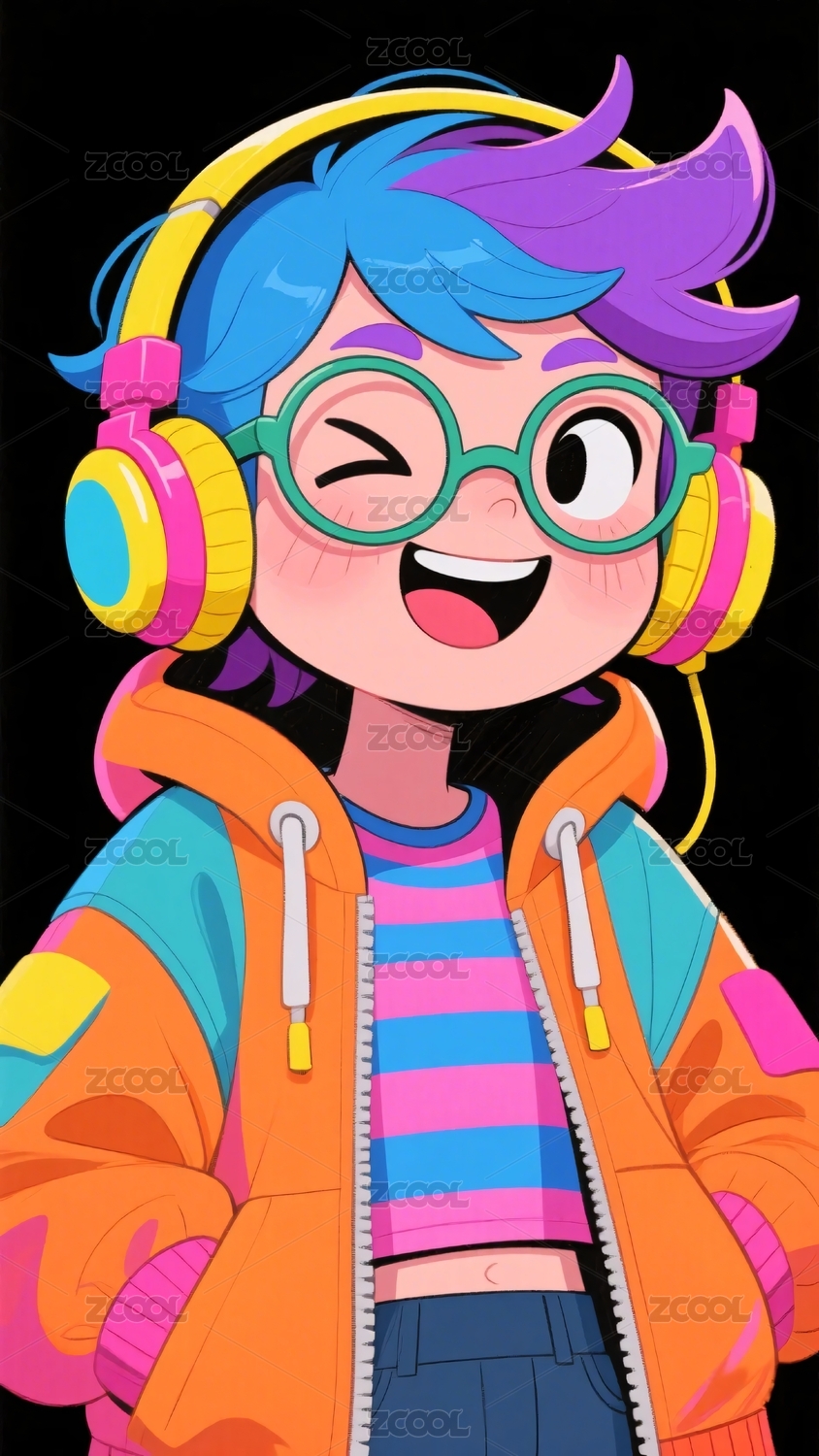 卡通女孩,彩色头发,毛衣,短裤,运动鞋,插画
