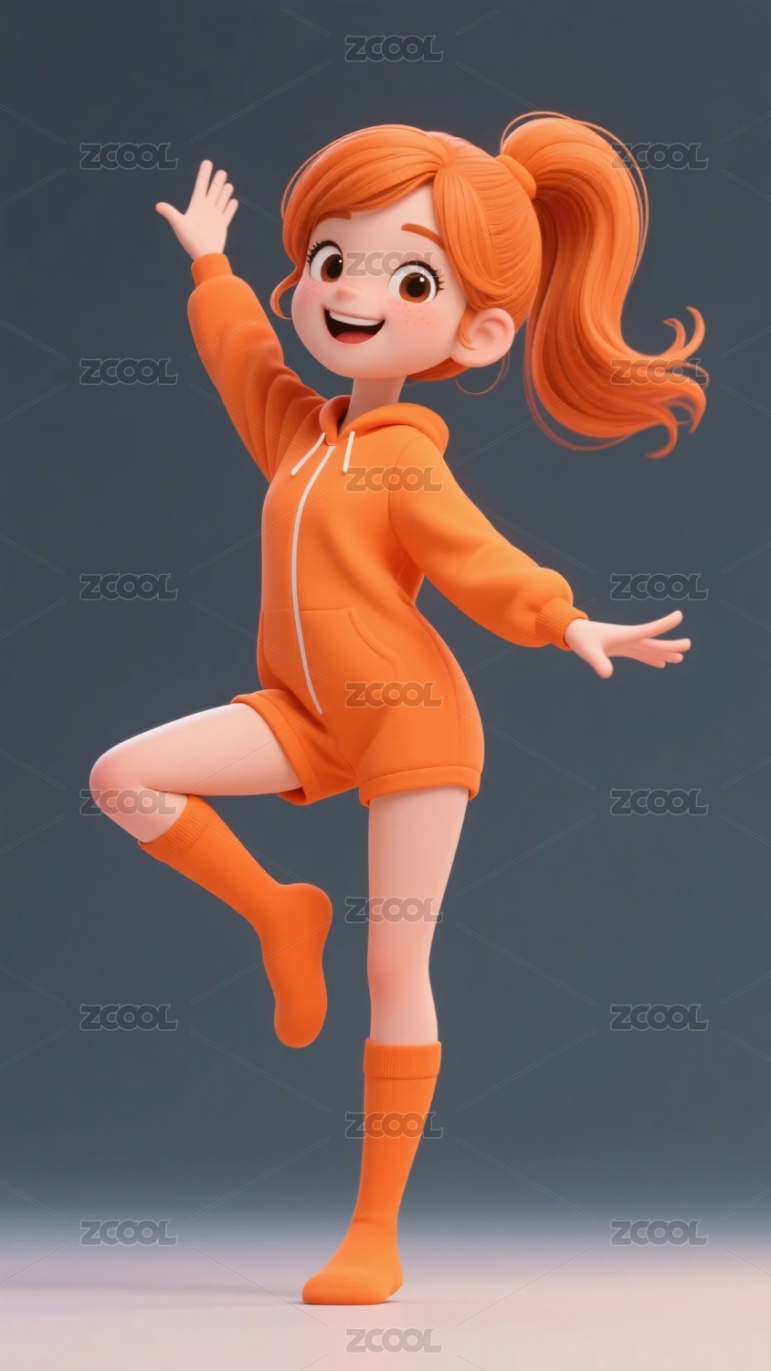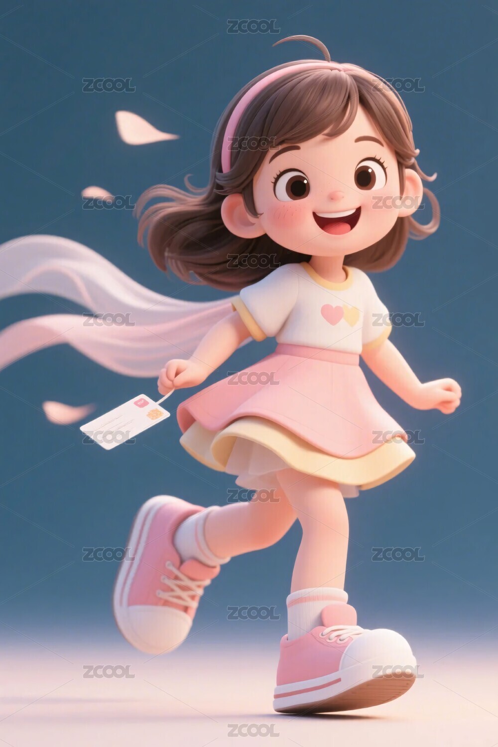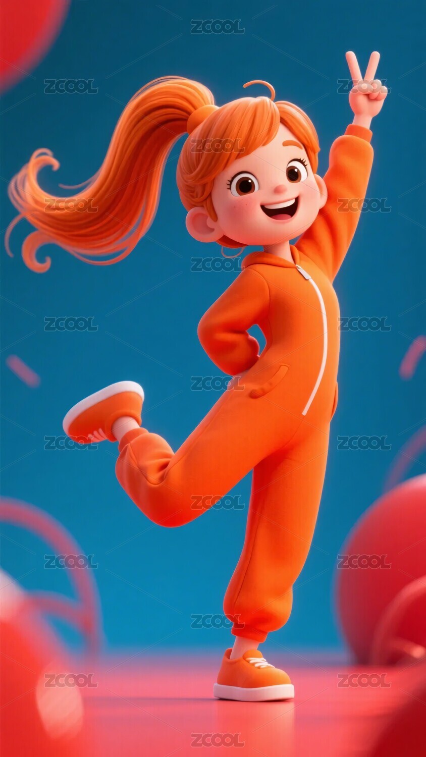 卡通女孩,跳跃,红衣,马尾,插画,童趣,欢乐,矢量,动画,人物