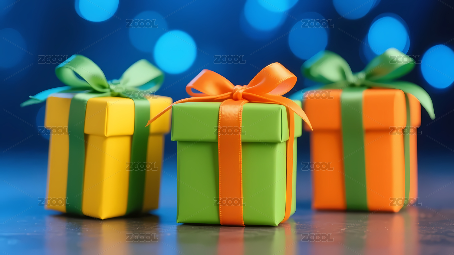 彩色礼物盒蓝色光斑背景