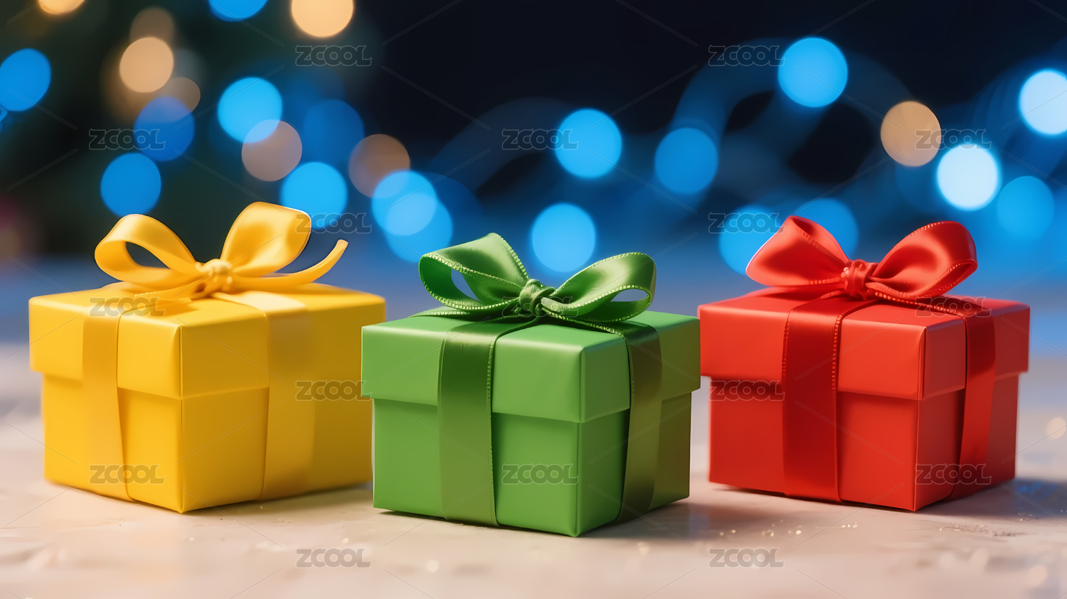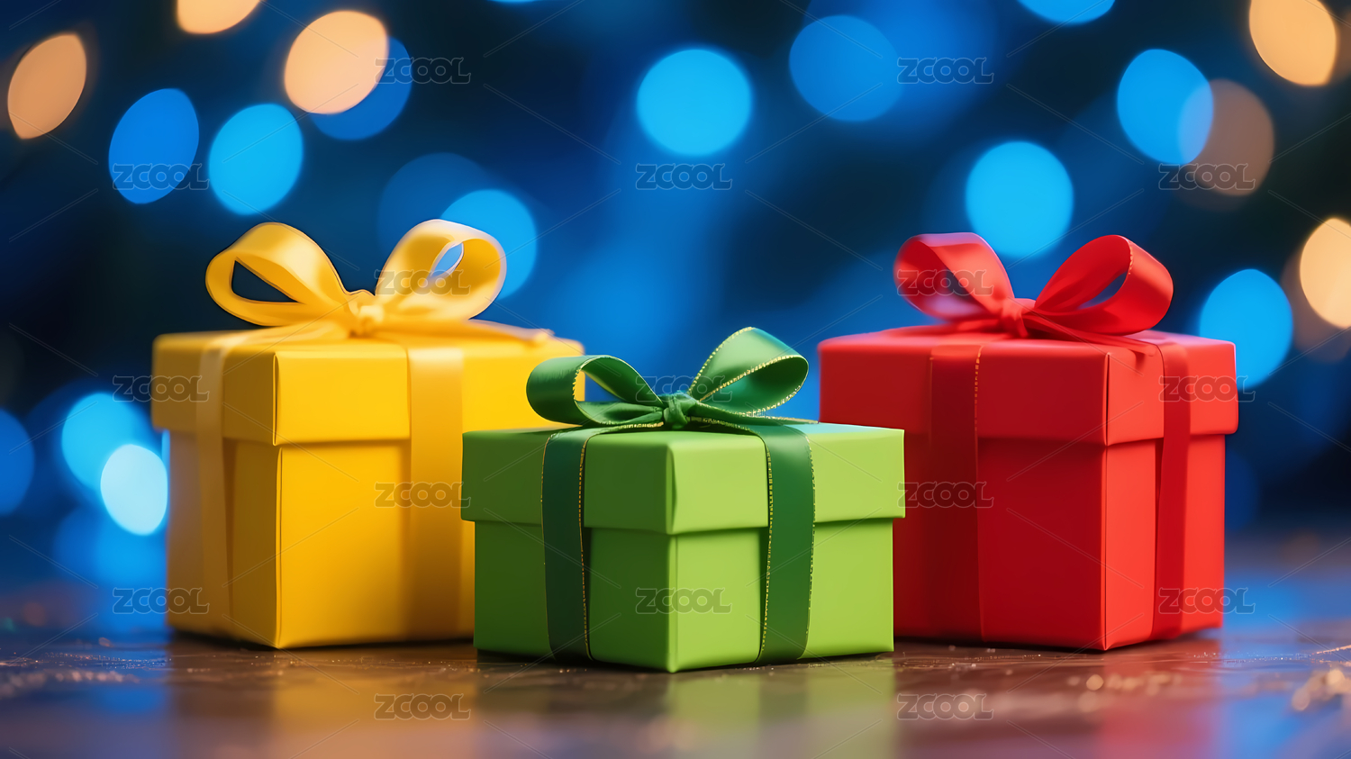 蓝色,喜庆,装饰,黄色,绿色,红色,灯光,礼物,彩带,温馨