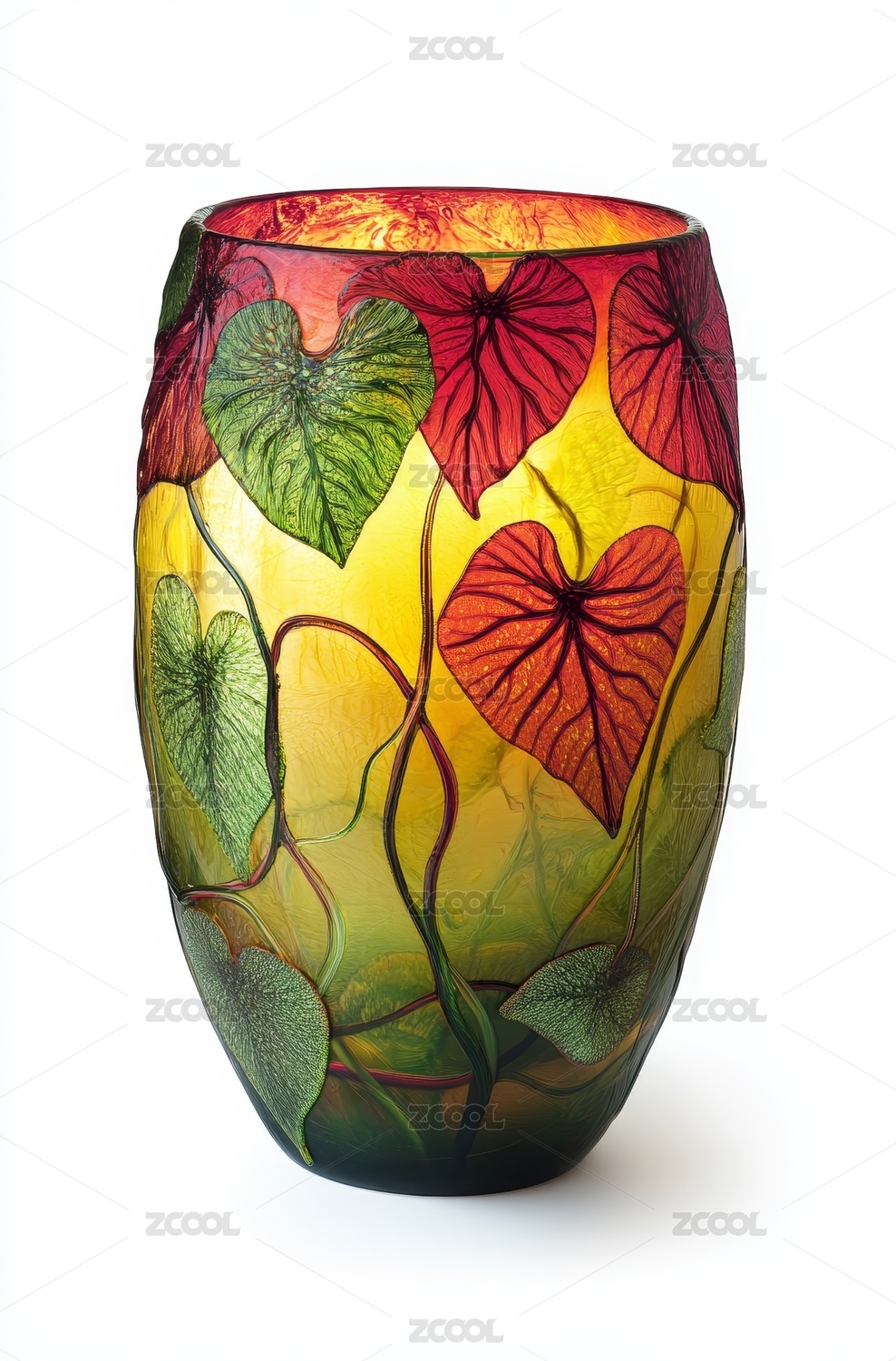 彩色,玻璃,花瓶,叶纹,纹饰,工艺,艺术,装饰,美观,创意