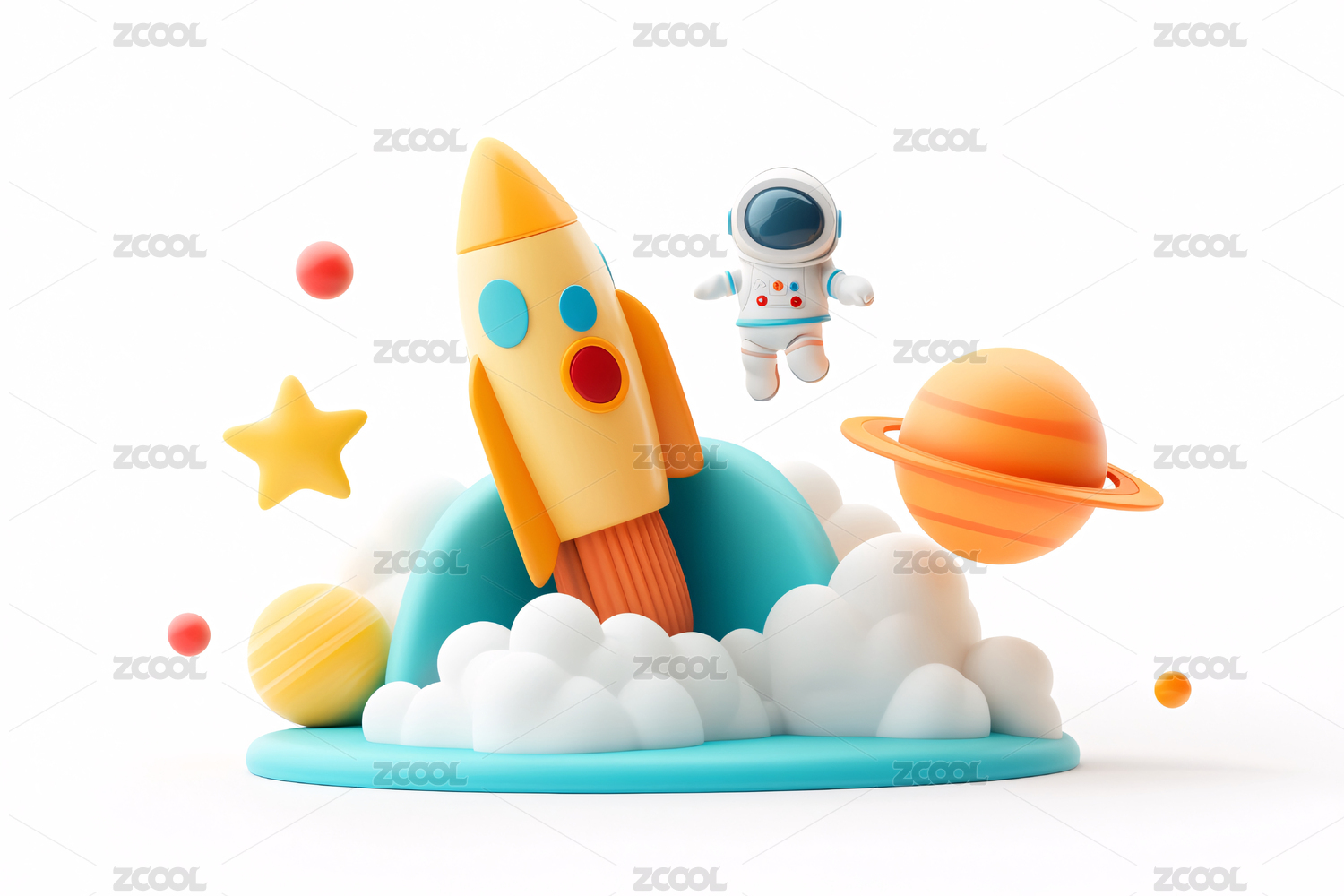 3D宇航员和火箭立体插画