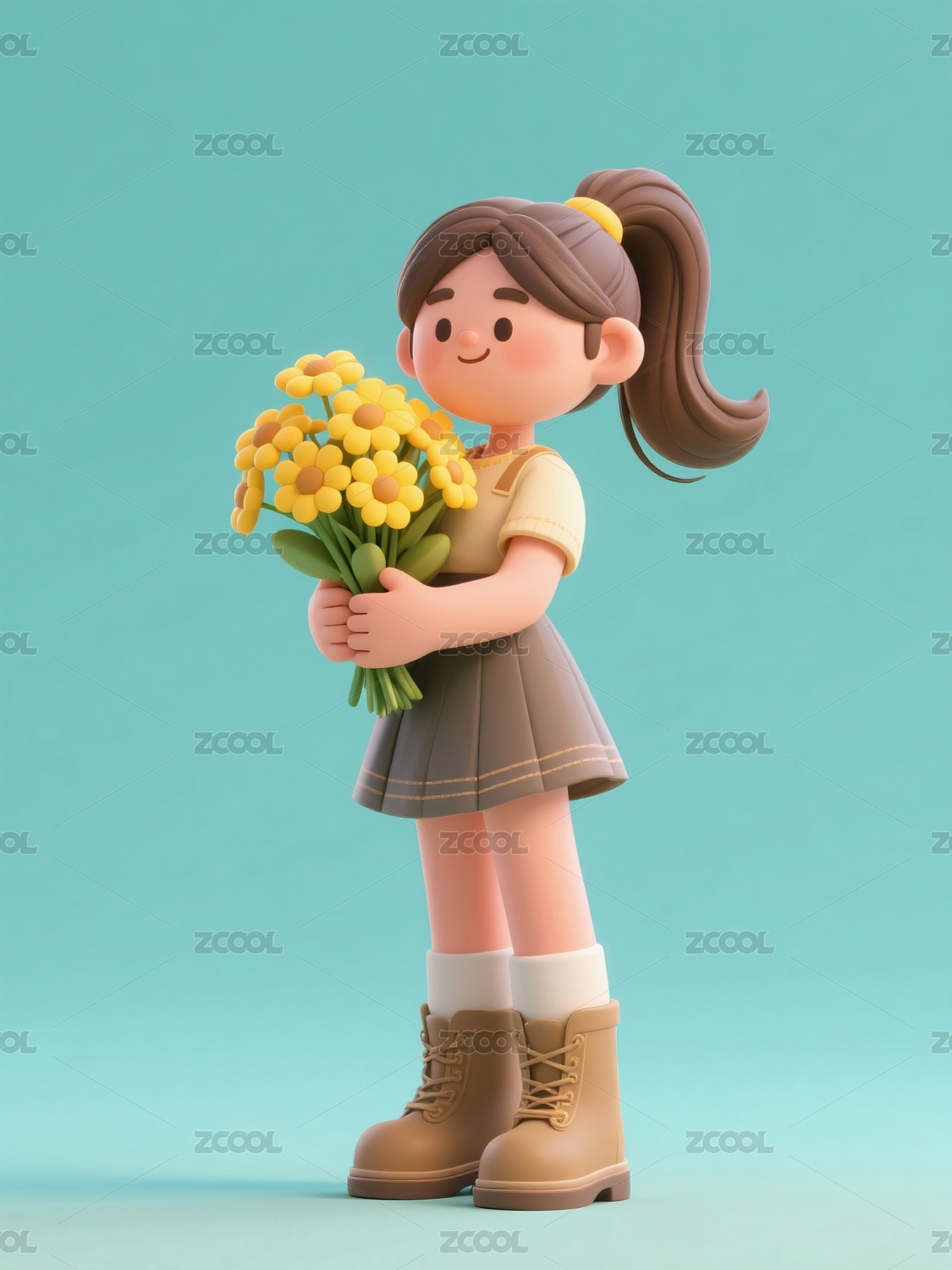 教师节母亲节七夕节妇女节3D人物收到鲜花