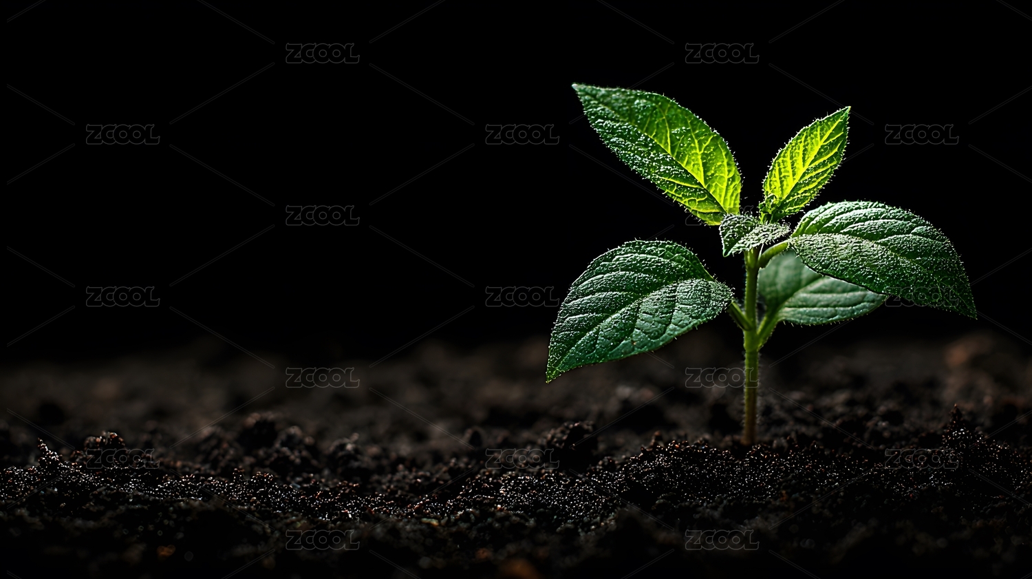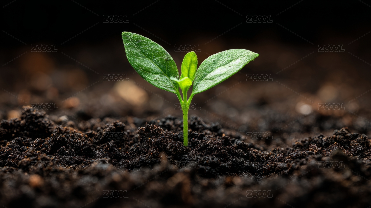 嫩芽破土而出 象征生命力 黑色背景