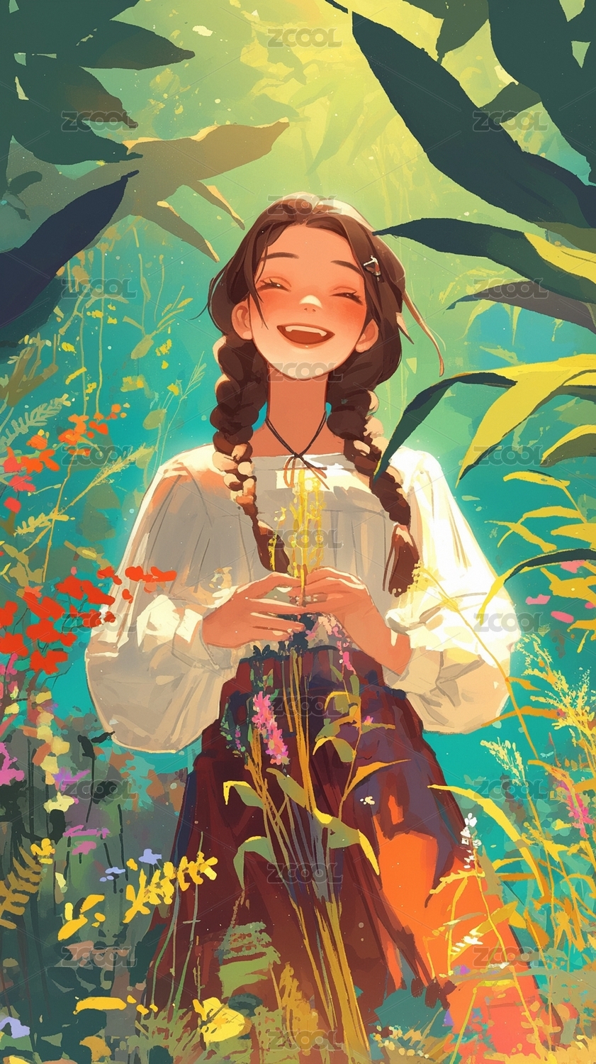 花中美女插画