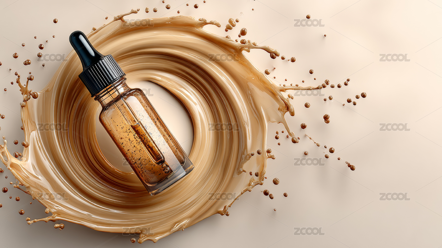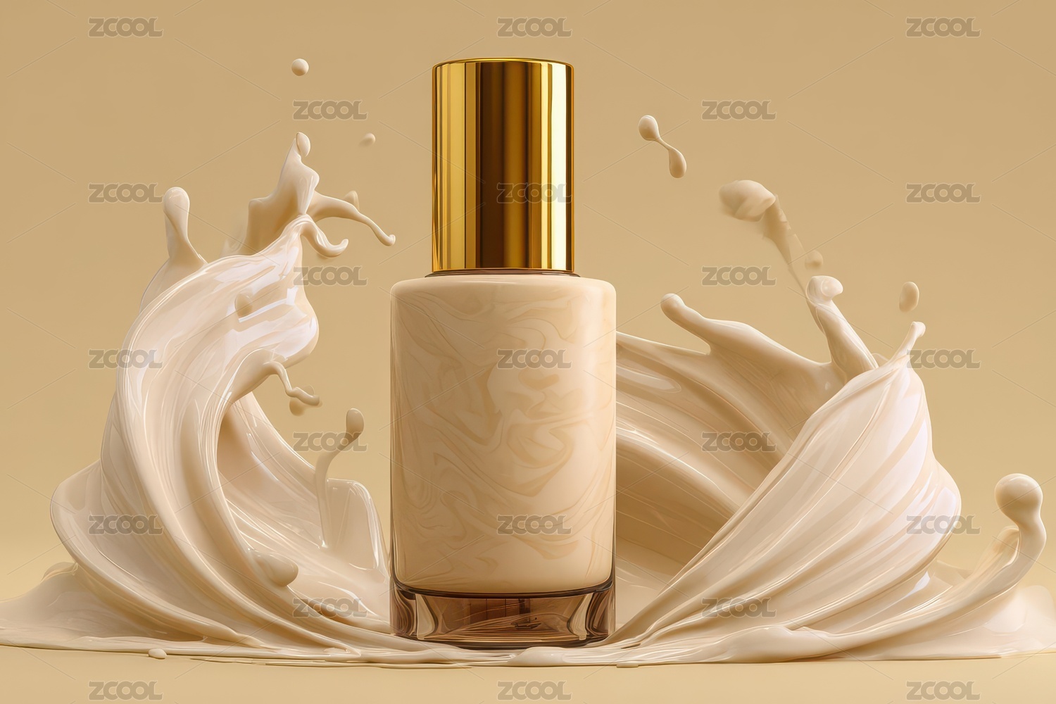 乳液瓶与奶油飞溅的奢华护肤场景