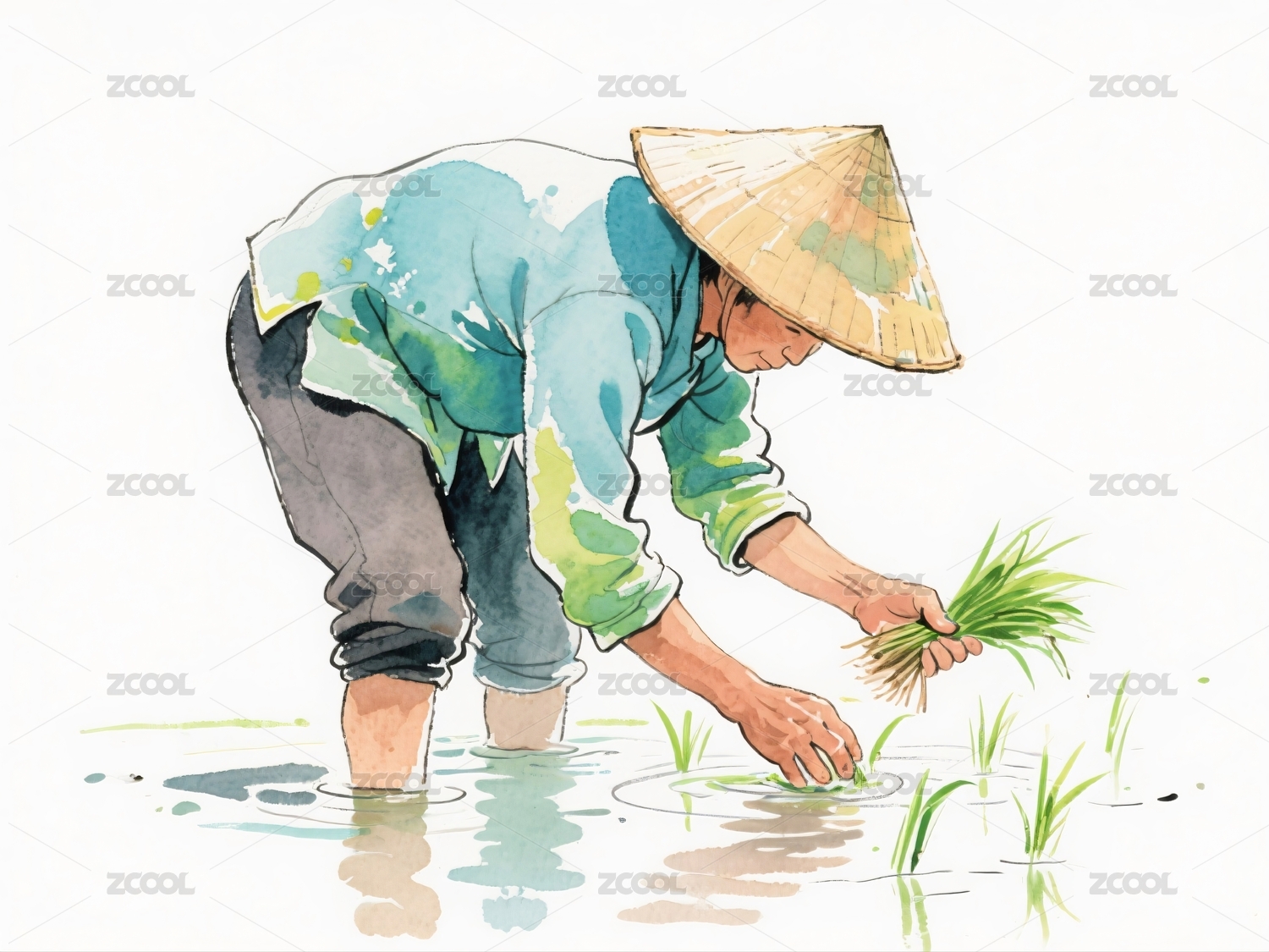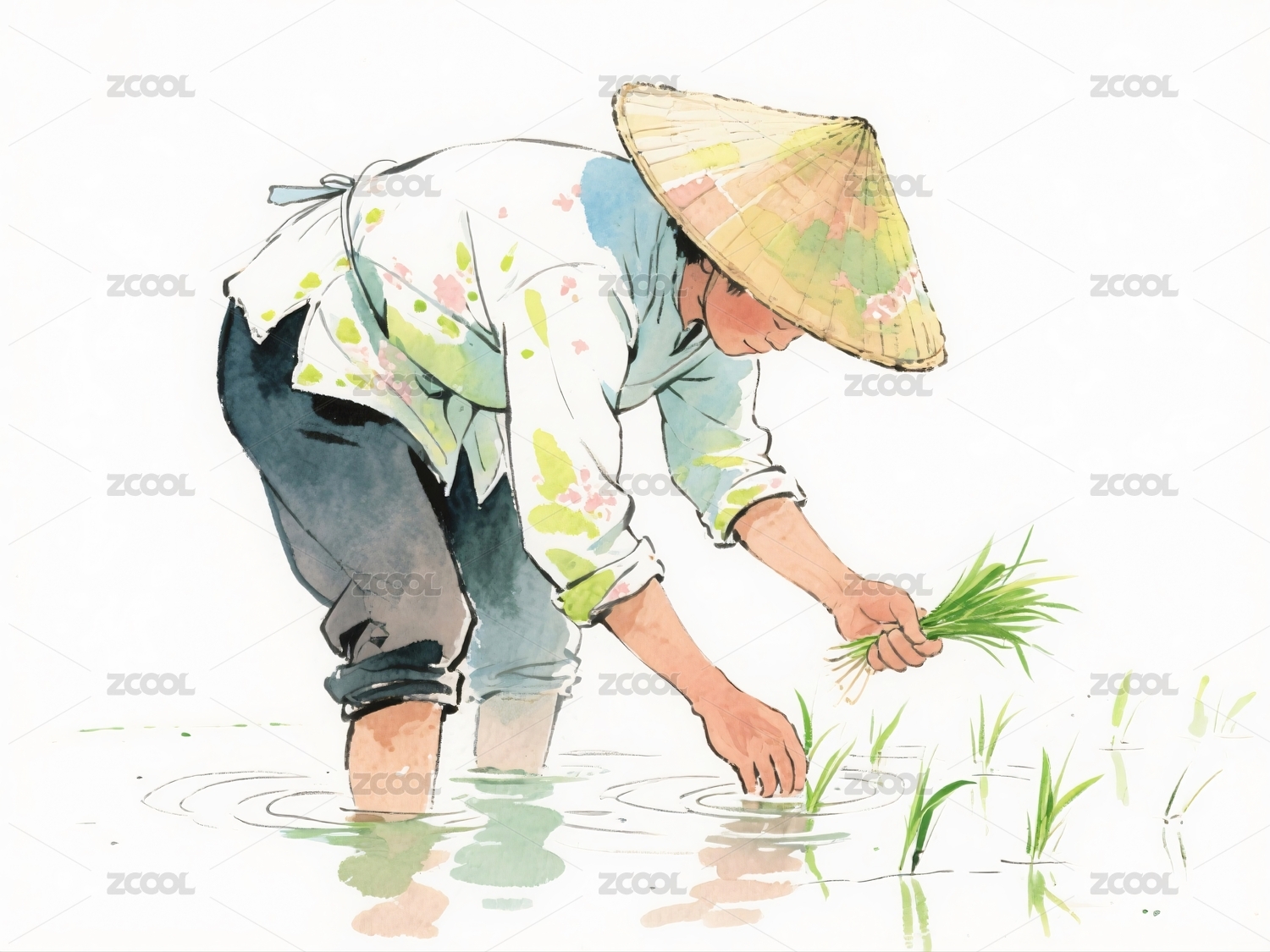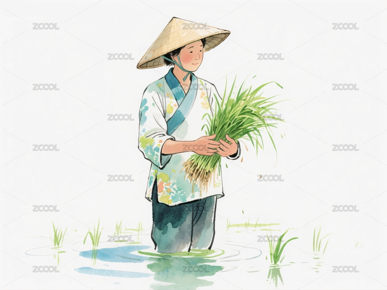 绿色,植物,人物,衣服,裤子,工作,劳作,环境,斗笠,亚洲