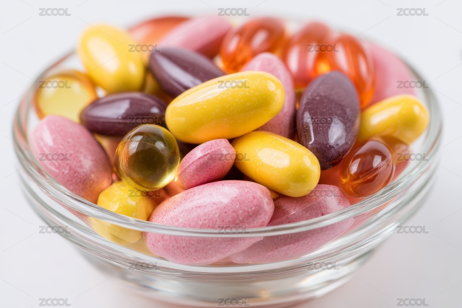 透明碗,多彩,胶囊,药丸,药物,医疗,健康,保健,补充,维生素
