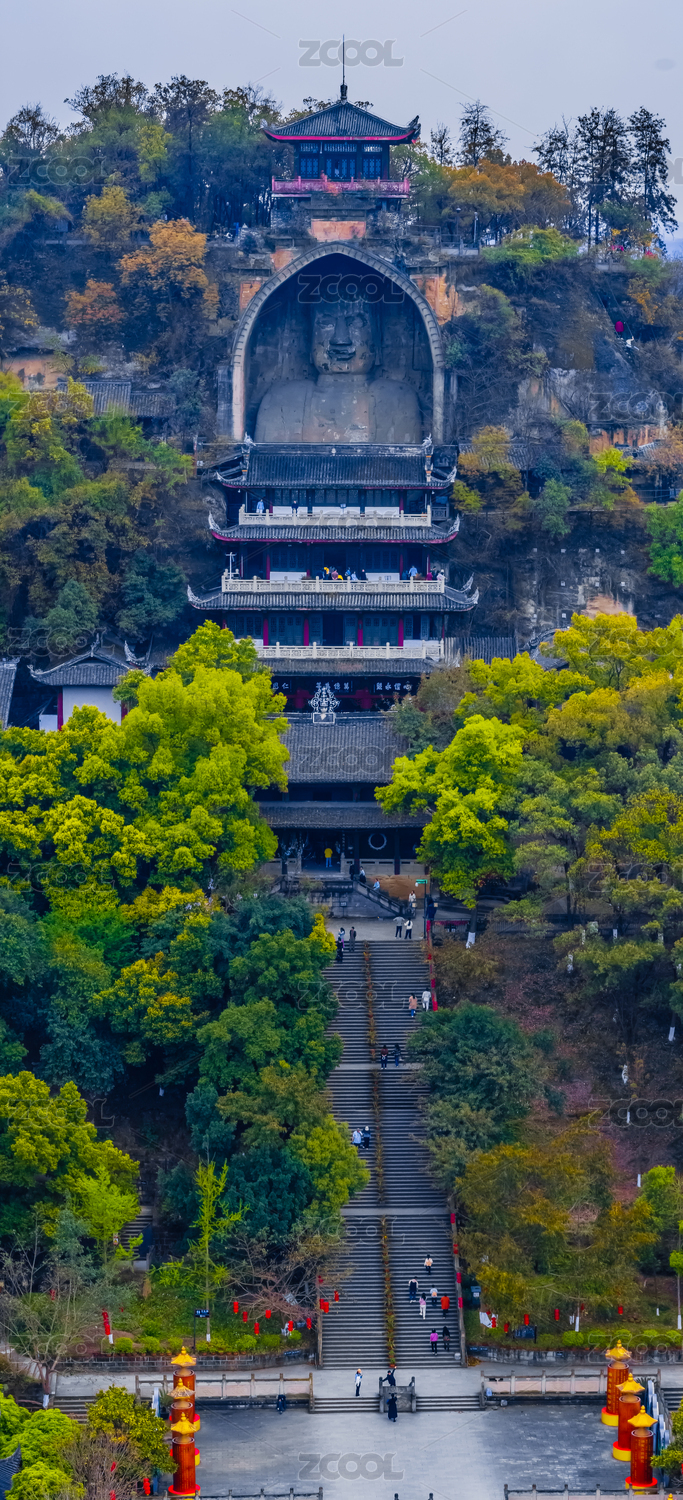 中国四川省乐山市荣县大佛石窟景区建筑