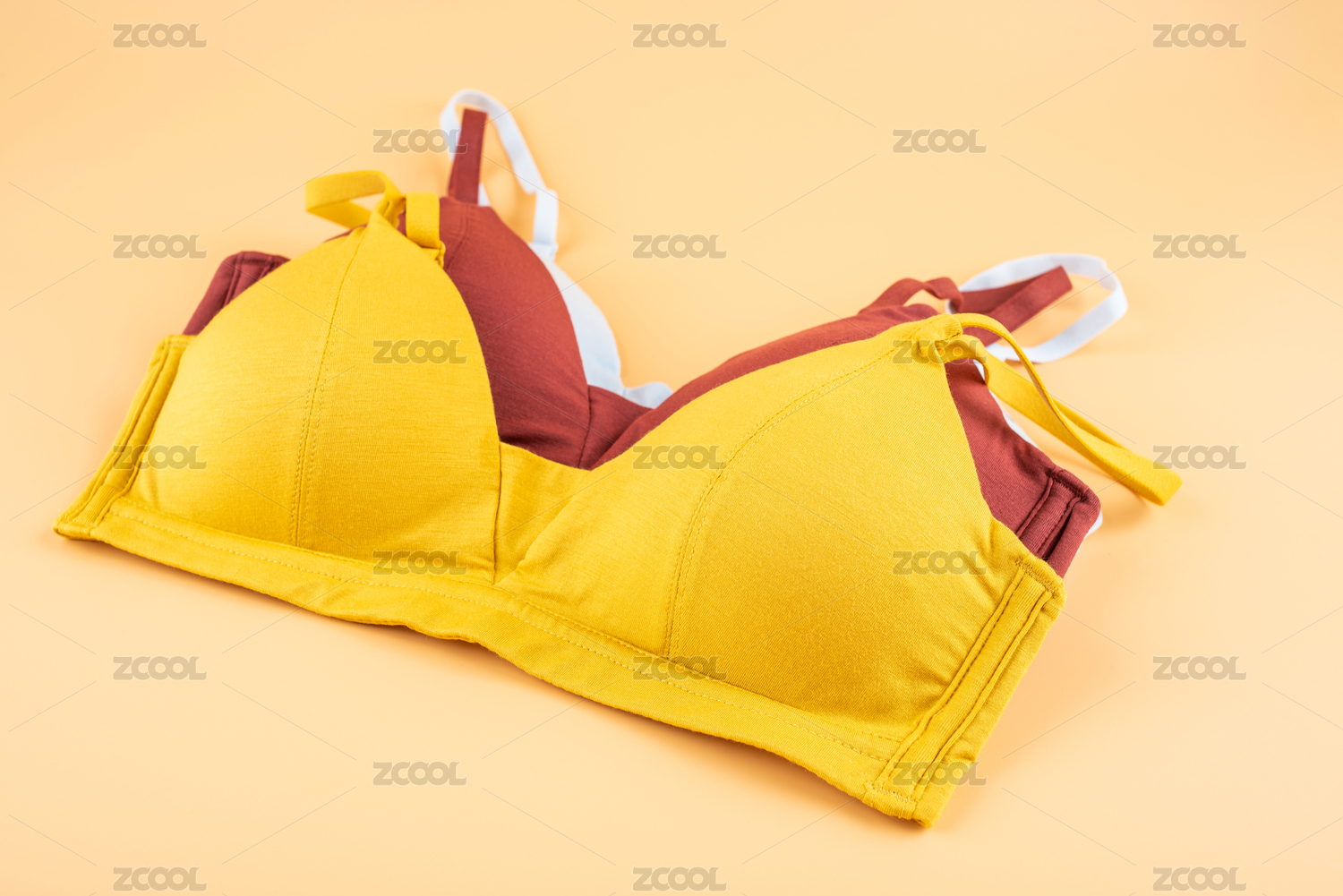 黄色背景上的纯棉内衣,女性时尚购物概念