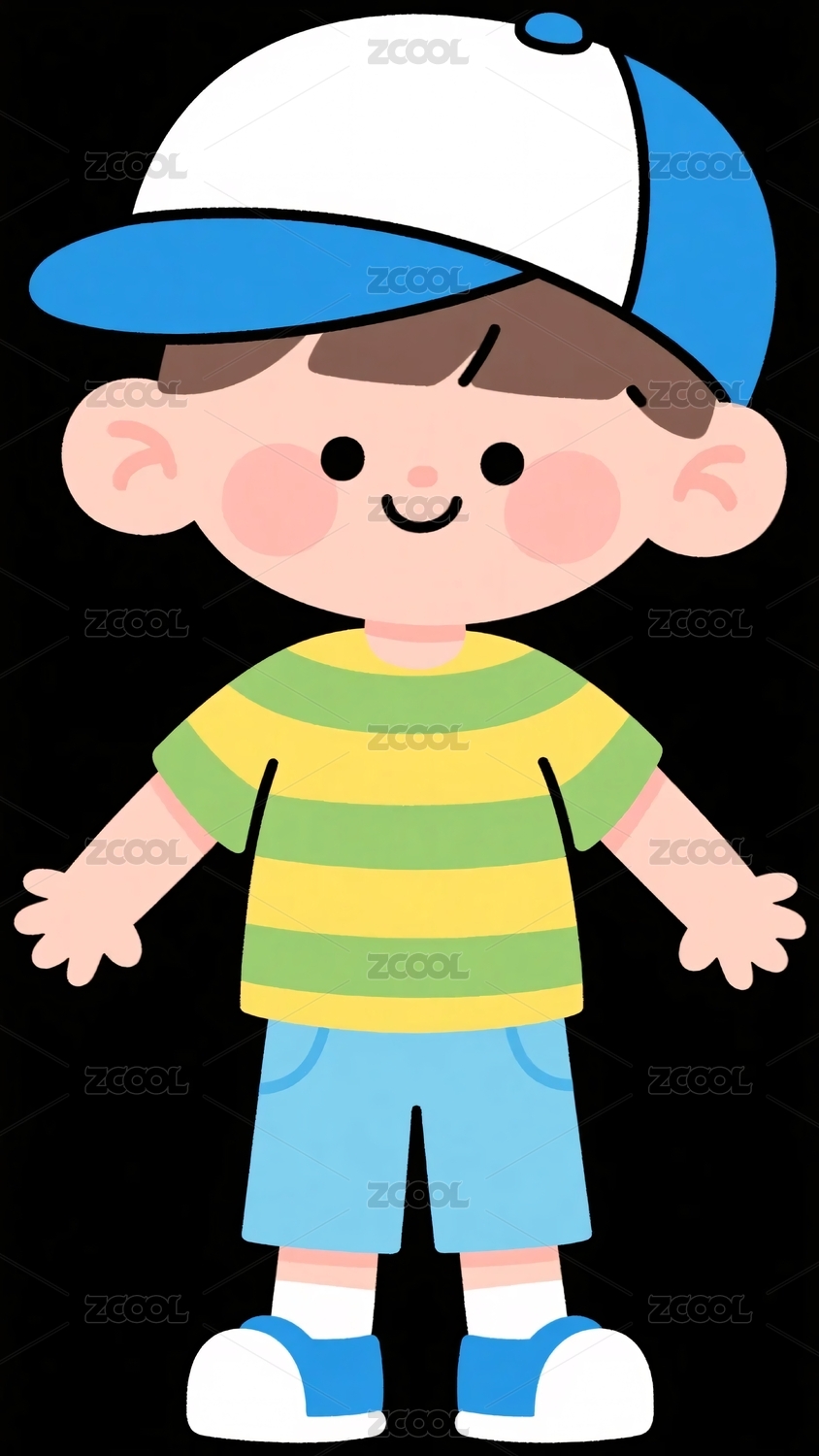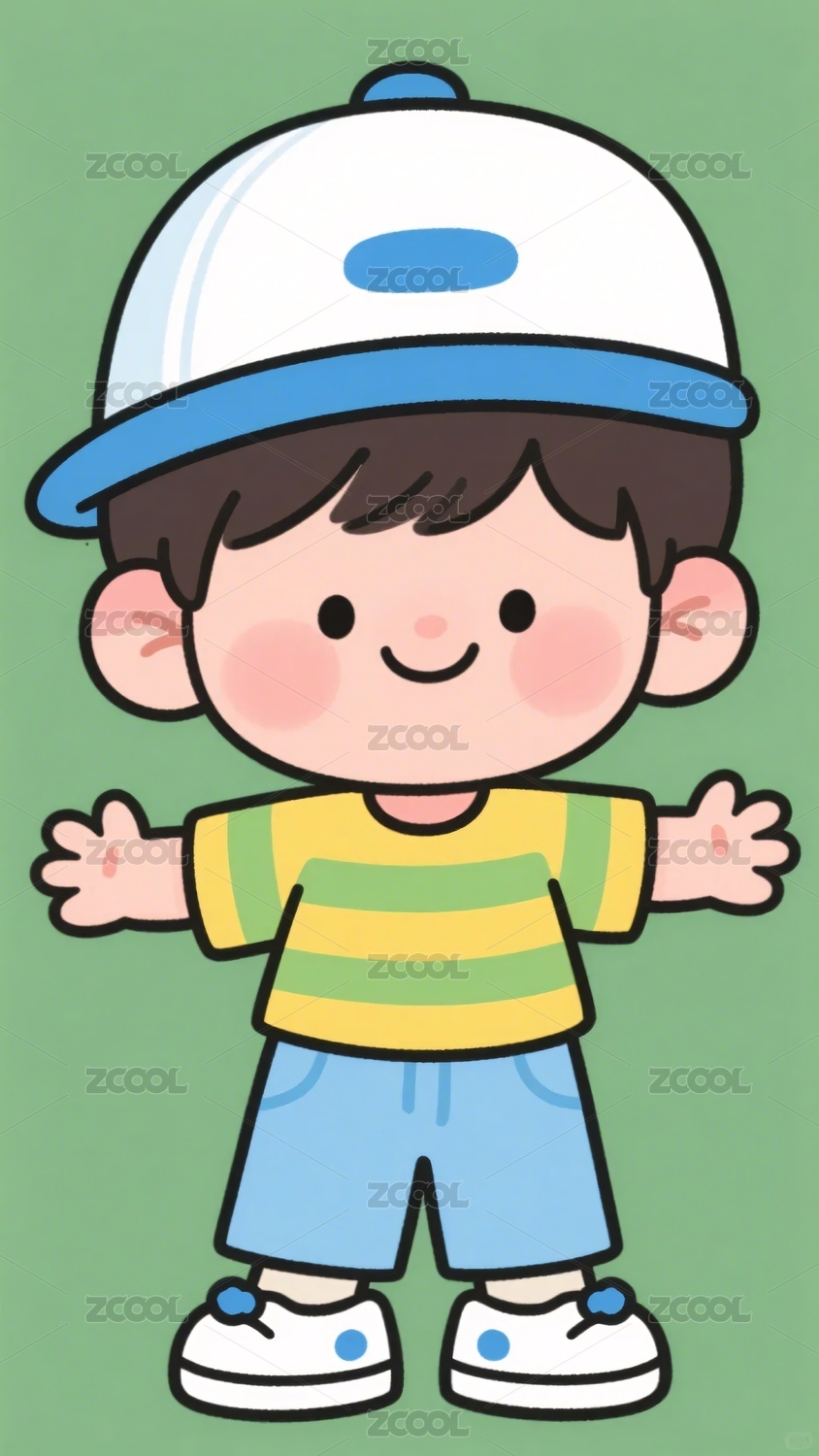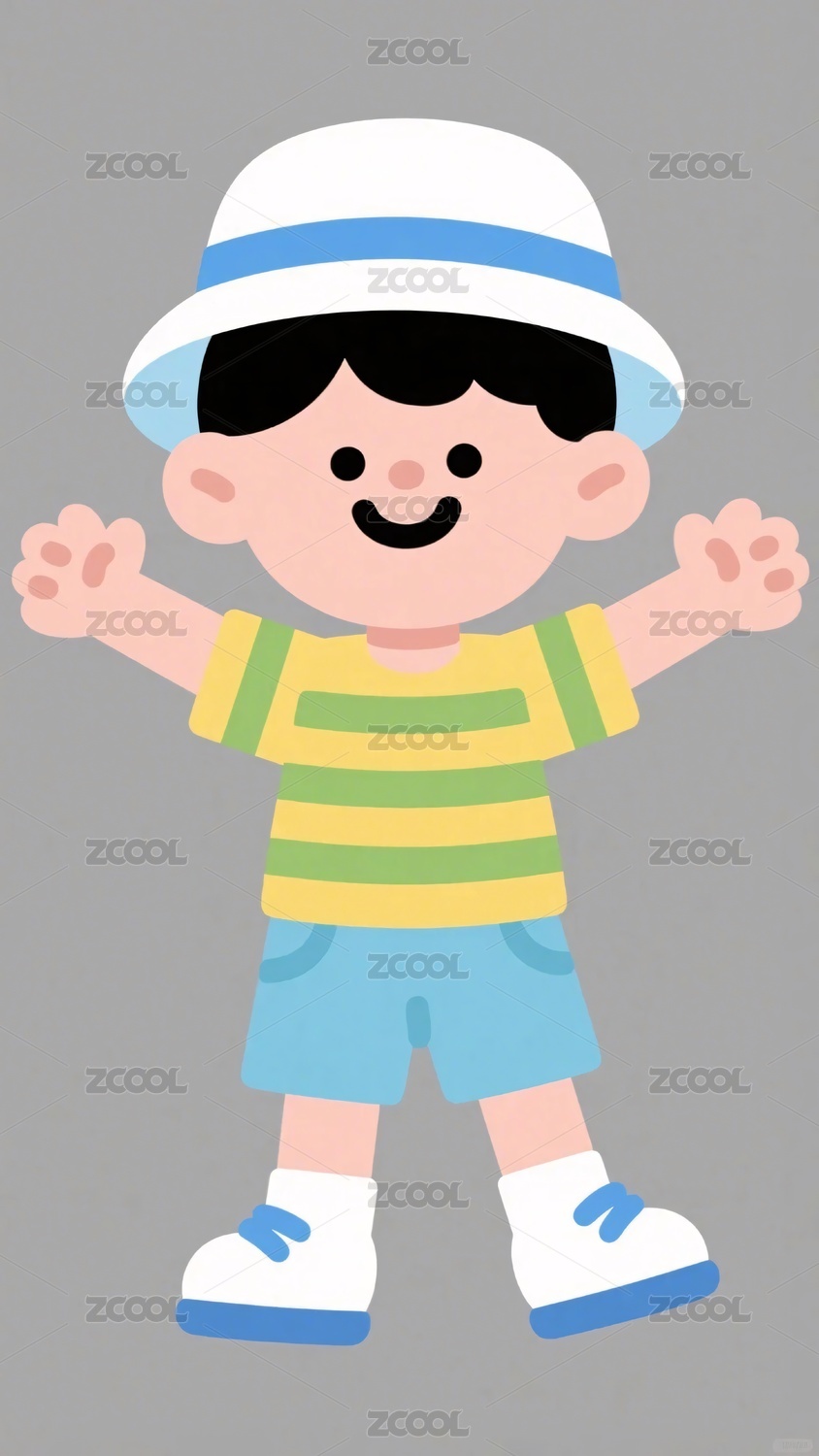 小男孩,帽子,条纹上衣,裤子,鞋子,插画,卡通,人物,张开双臂,休闲