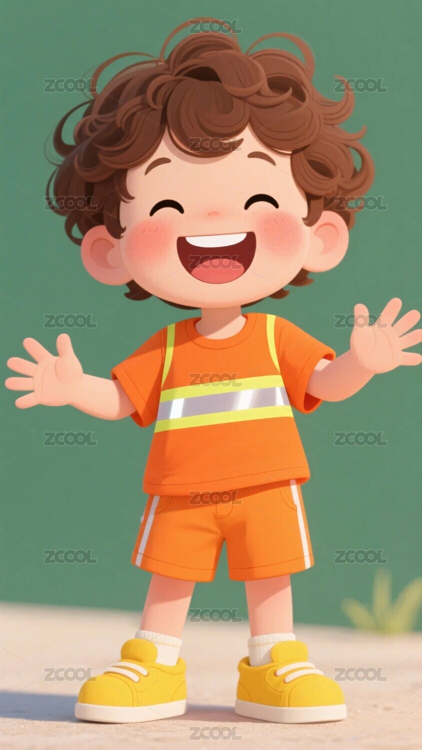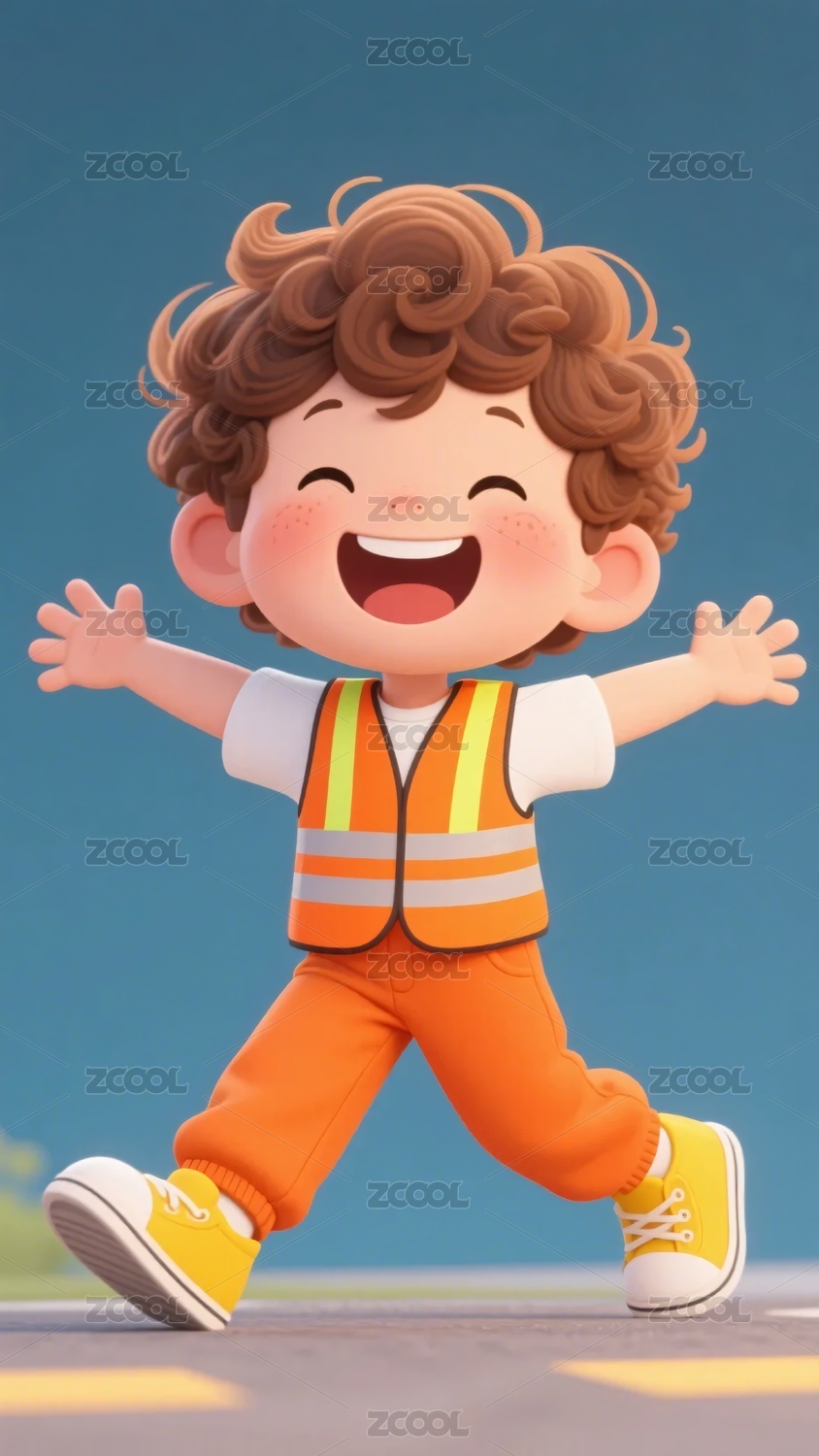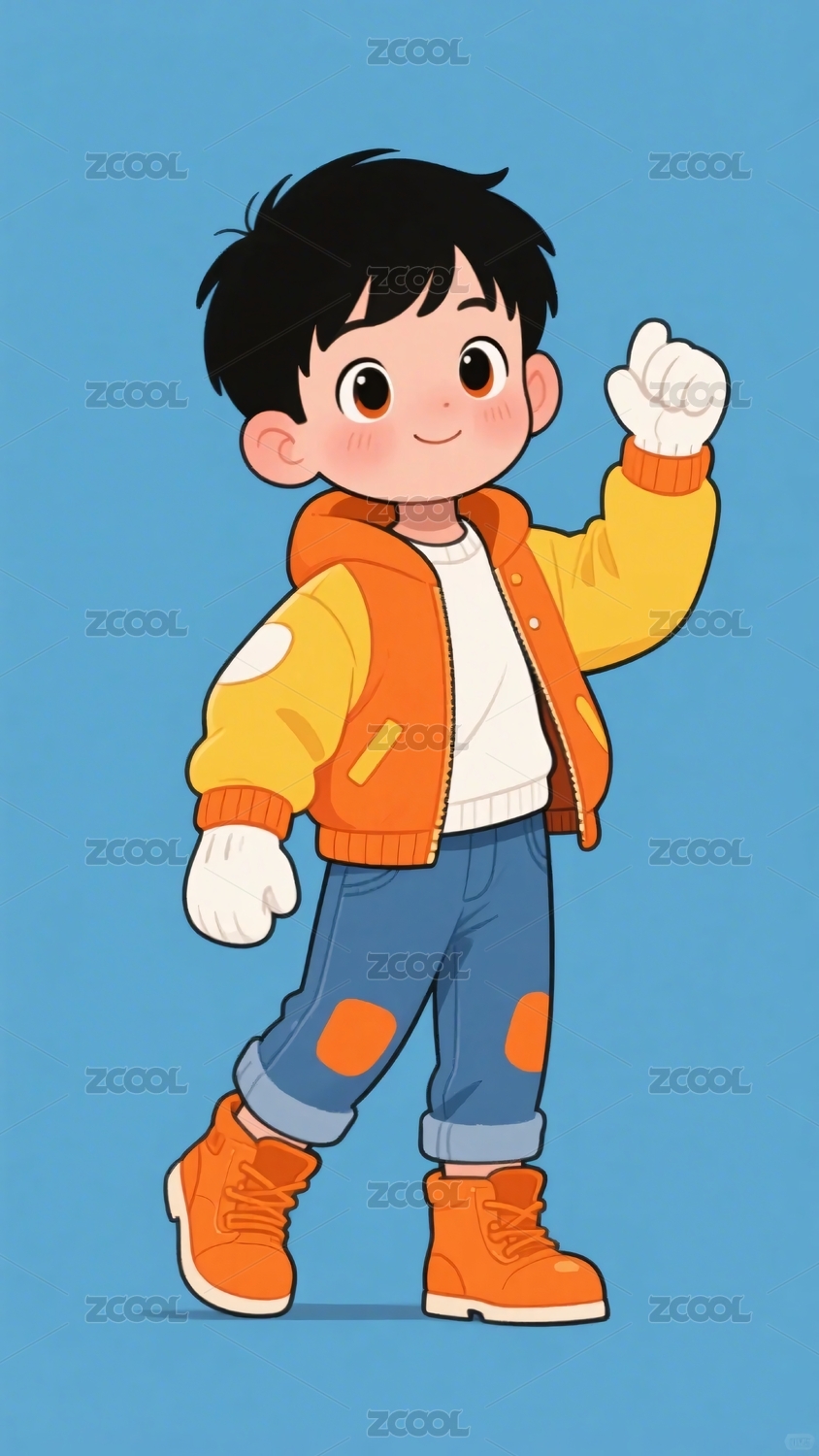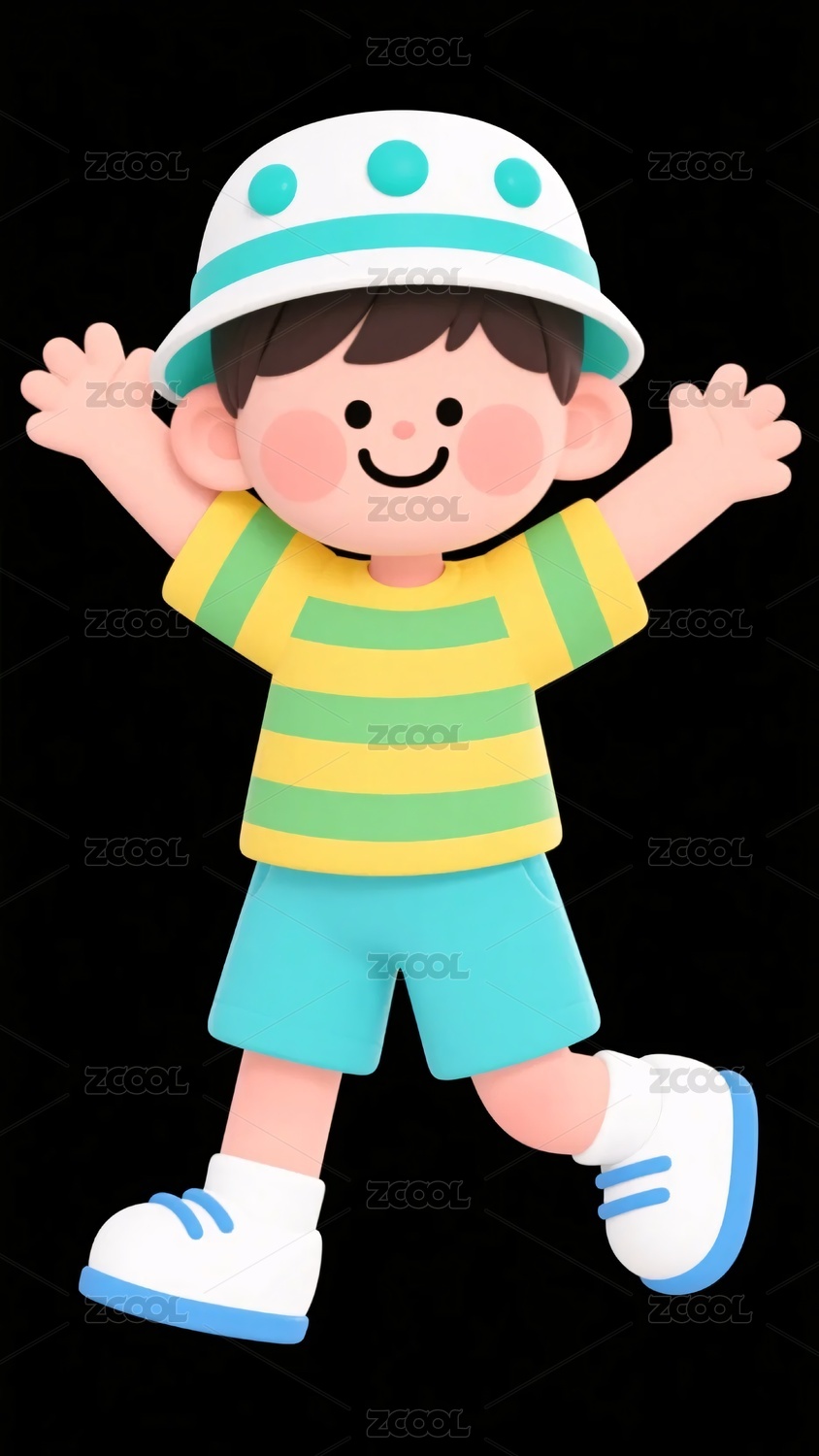 小男孩,帽子,条纹上衣,裤子,鞋子,插画,卡通,人物,张开双臂,休闲