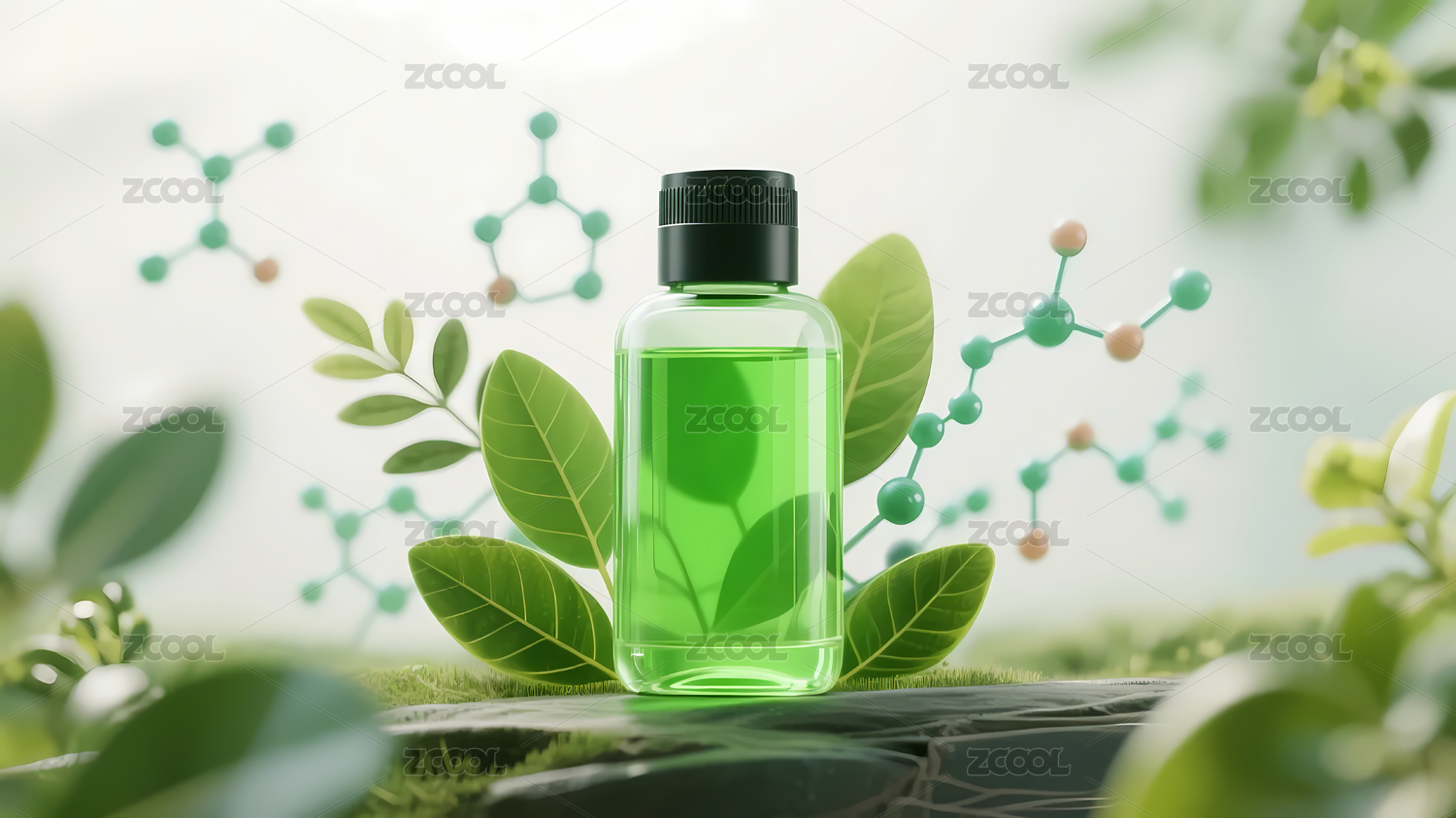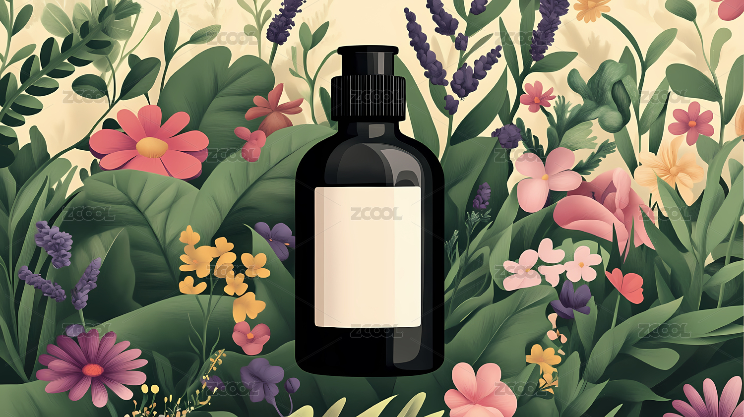 小药瓶,植物,花朵,绿叶,插画,清新,自然,简约,绿色,瓶子