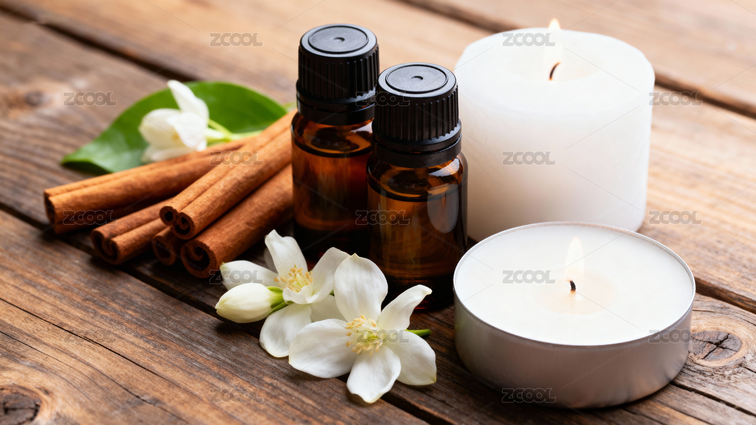蜡烛,香薰,花朵,石头,瓶子,插画,静物,放松,舒缓,自然