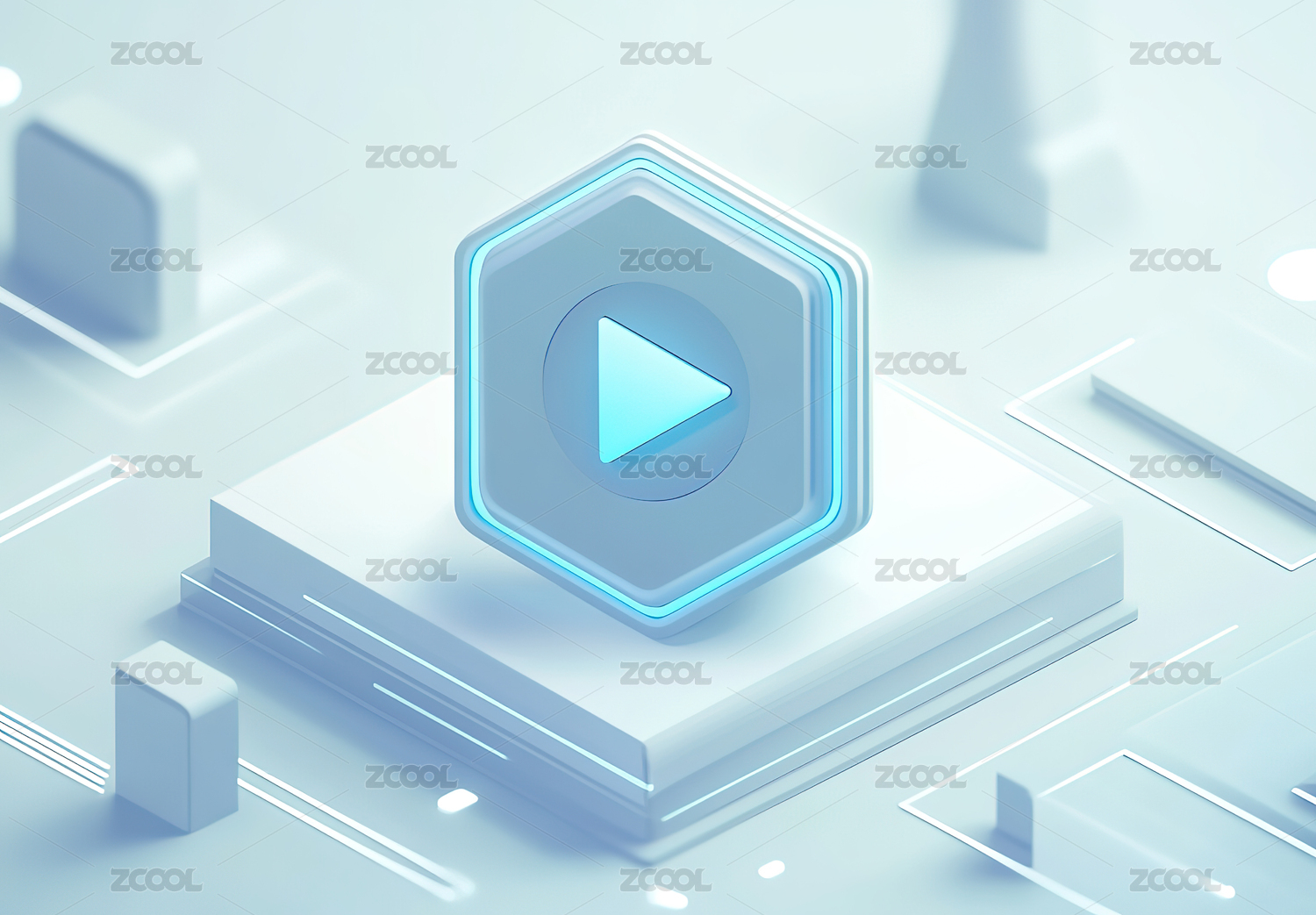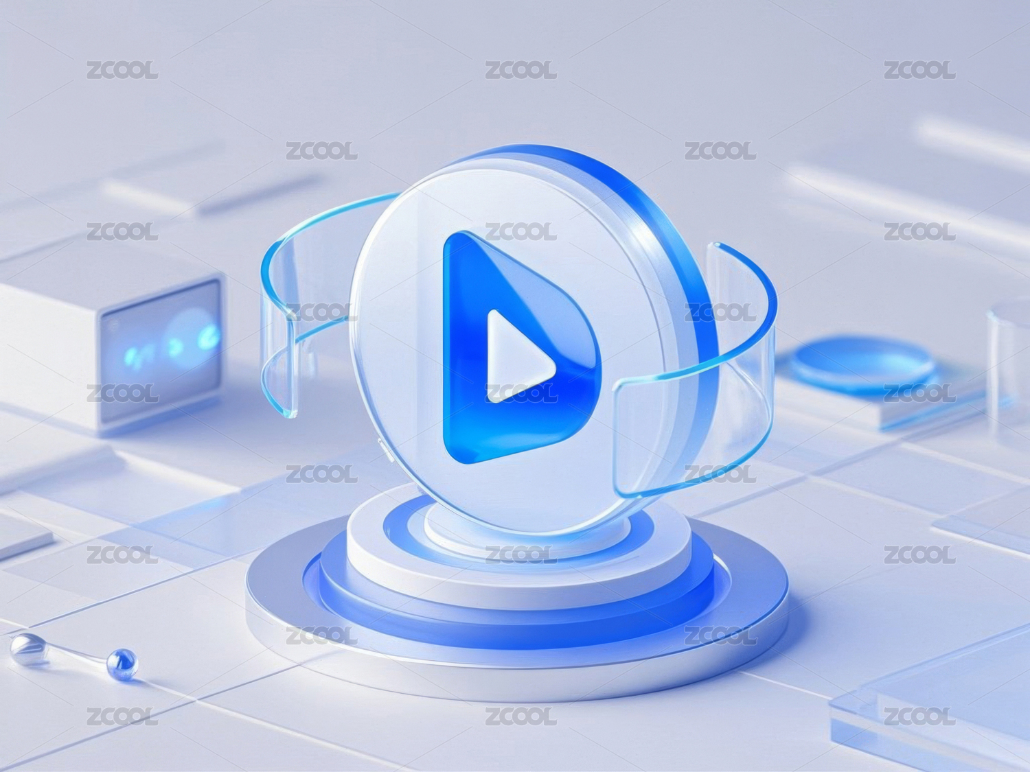 播放,按钮,科技,图标,蓝色,立体,现代,设计,界面
