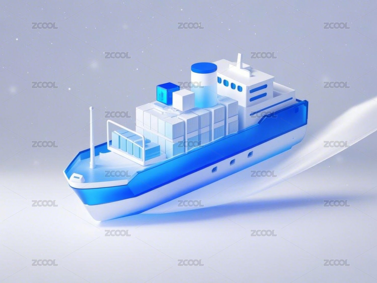 浅色背景上的白色货轮模型