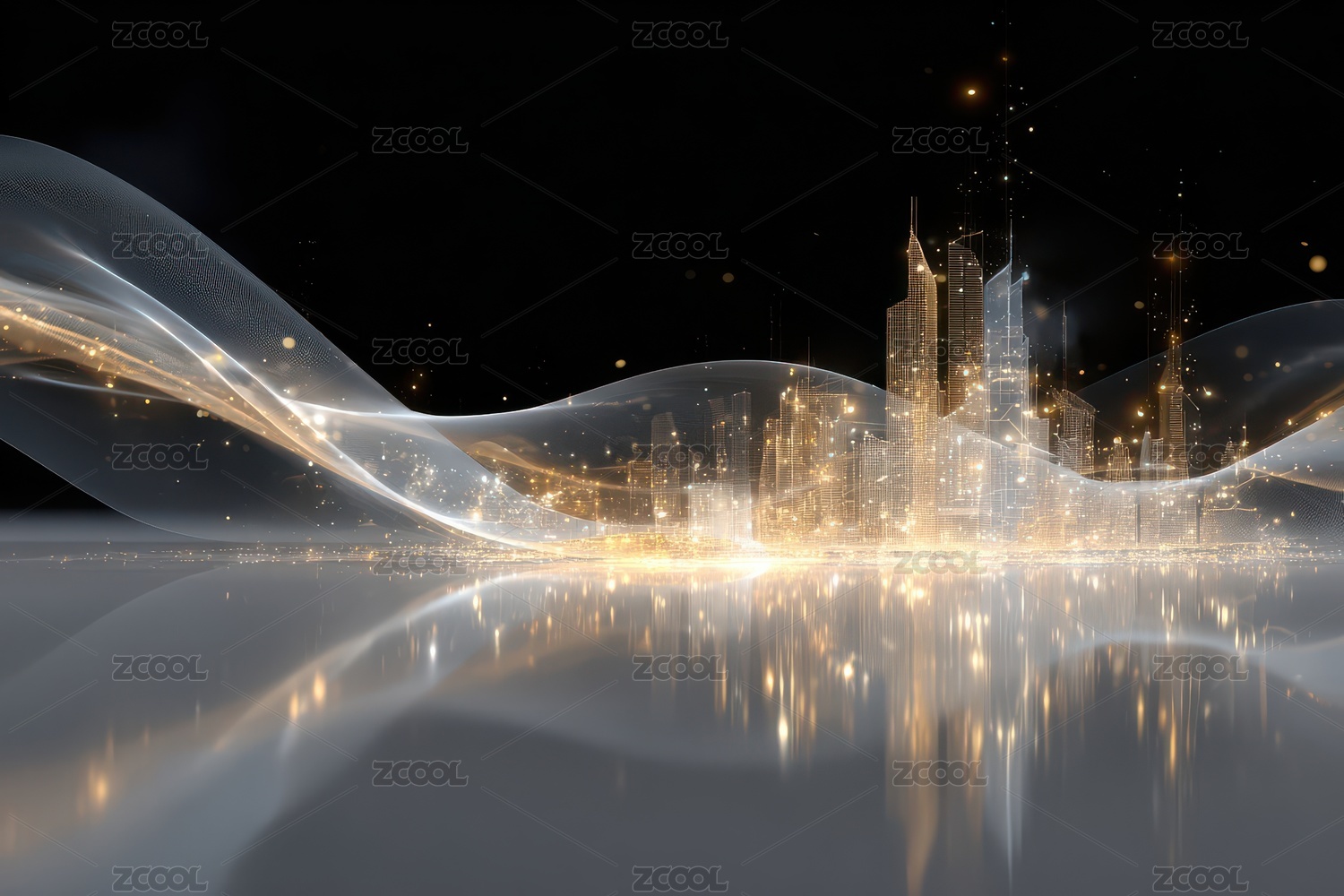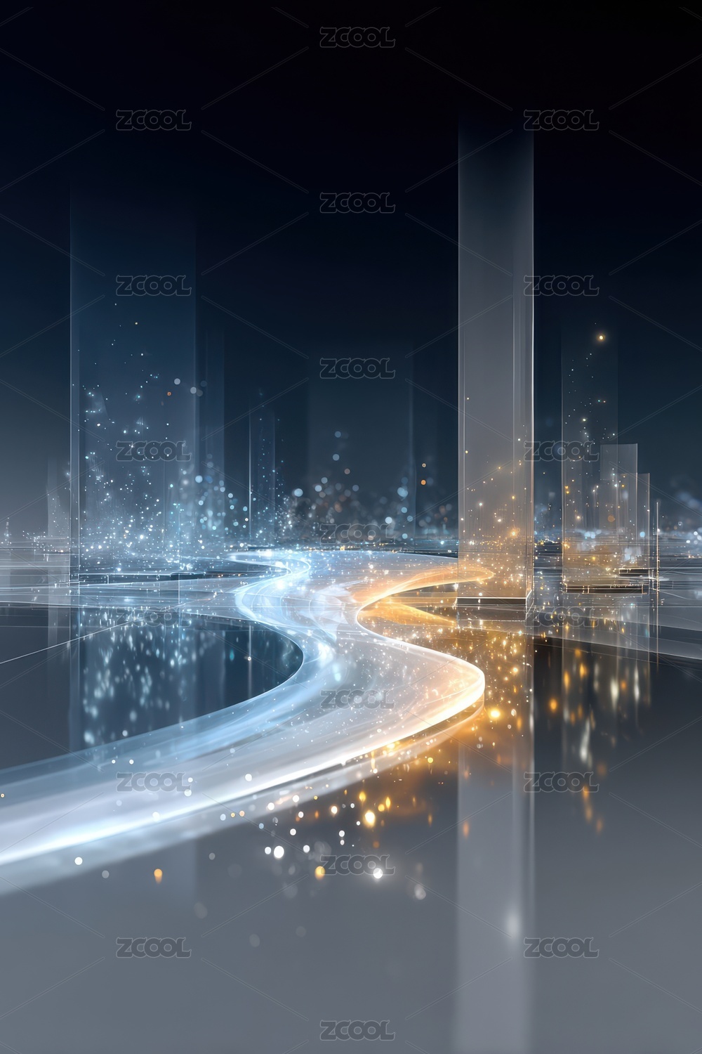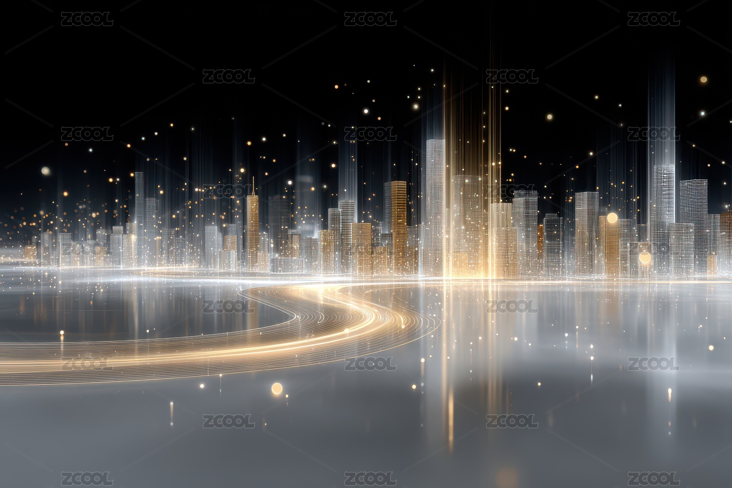 璀璨,反射,科技,未来,夜景,曲线,高楼,灯光