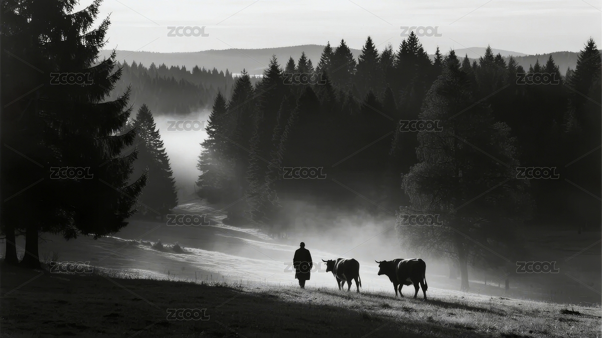 清晨,宁静,自然,风景,和谐,环境,森林,薄雾,树木,乡村