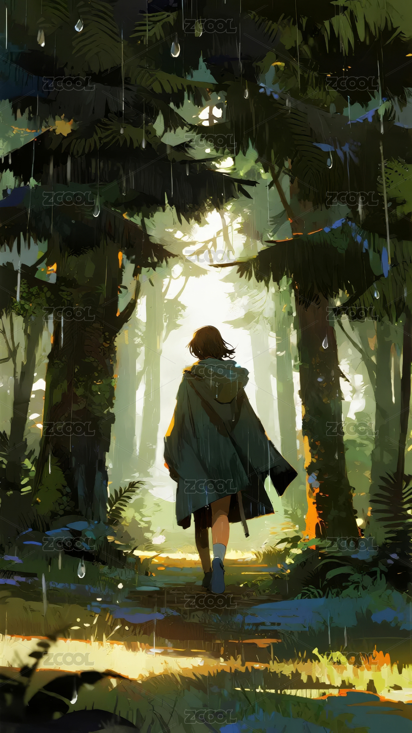 清晨,宁静,自然,艺术,光影,梦幻,绿色,清新,女子,森林