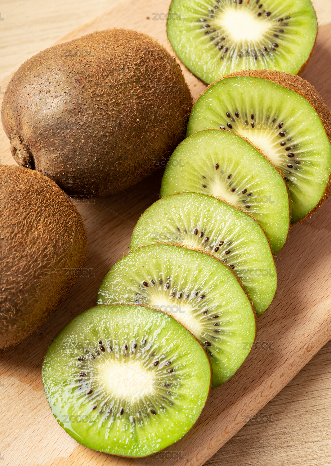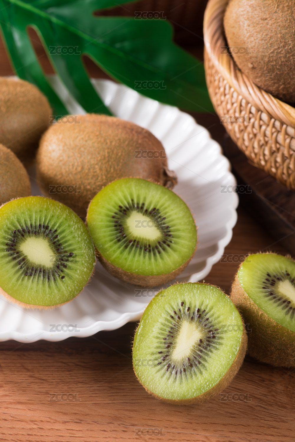 桌上切开的绿心猕猴桃奇异果