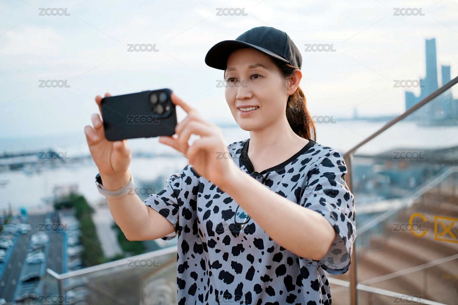 女子,相机,城市景观,拍摄,户外,高处,摄影,城市,天际线,建筑