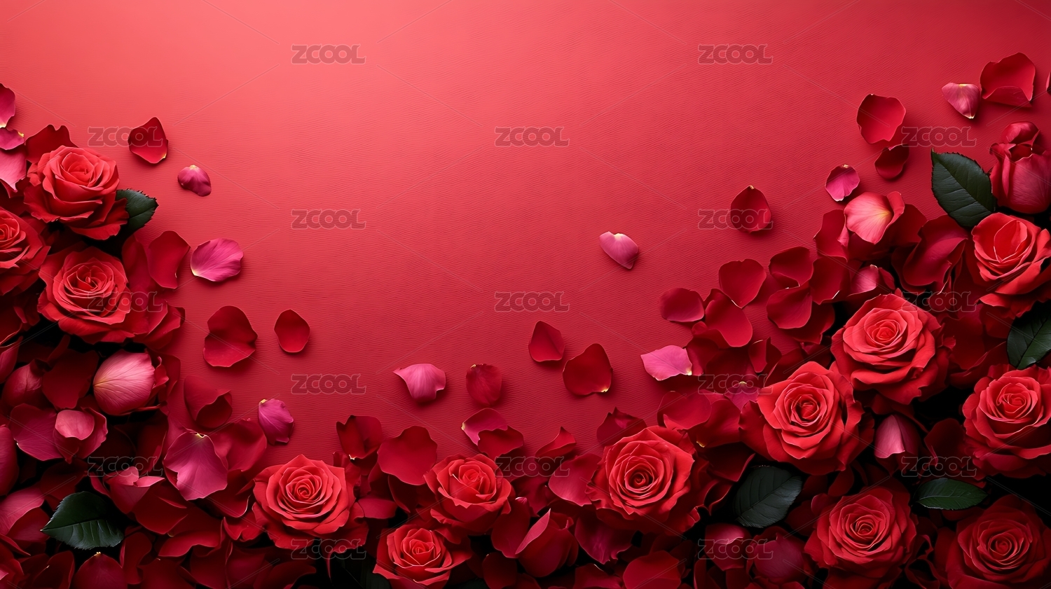 红色背景上的一簇七夕节情人节鲜花红玫瑰花