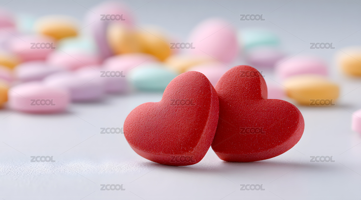 柔和粉蓝紫心形糖果