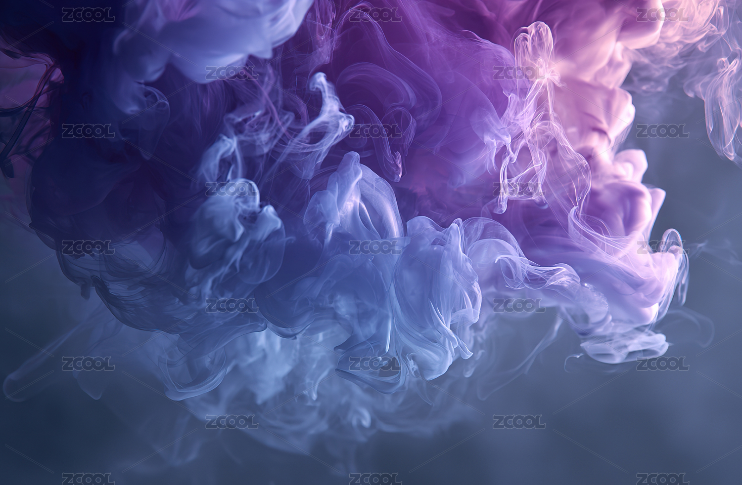 蓝粉烟雾交织的抽象画面
