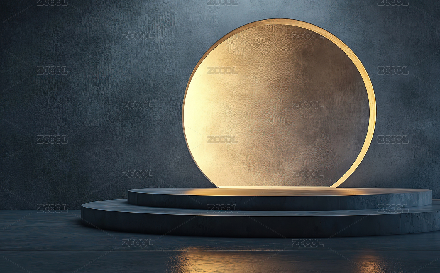 发光圆环与黑色讲台