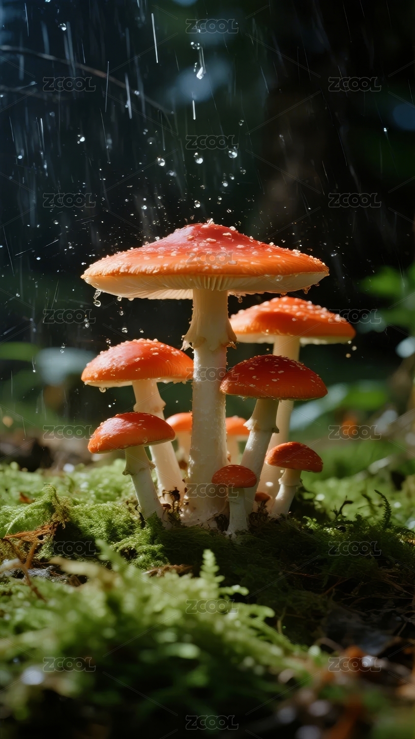 自然,环境,生态,户外,光影,蘑菇,橙色,雨滴,绿色,苔藓