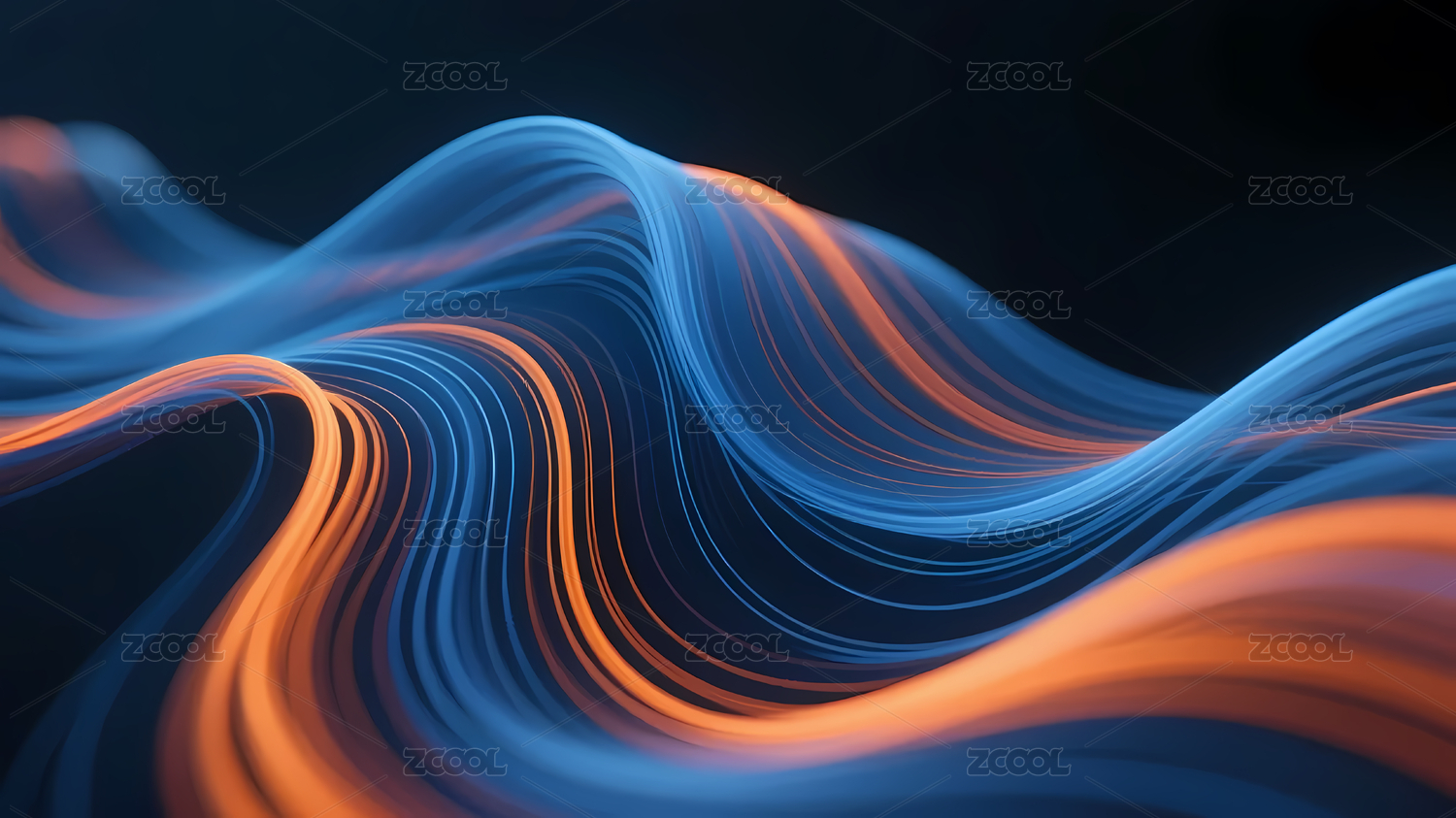 数码科技蓝橘曲线光波抽象图形海报网页背景