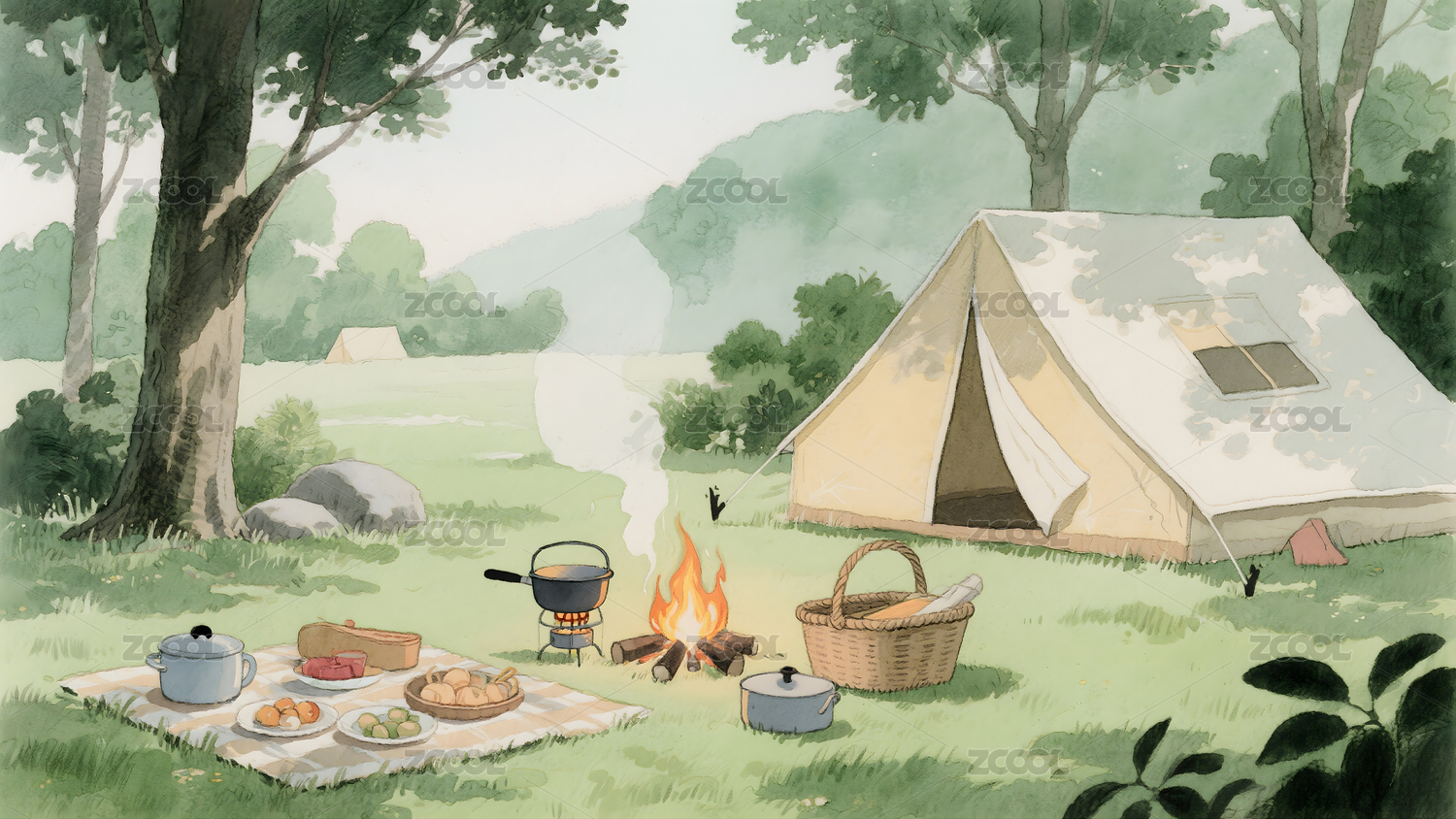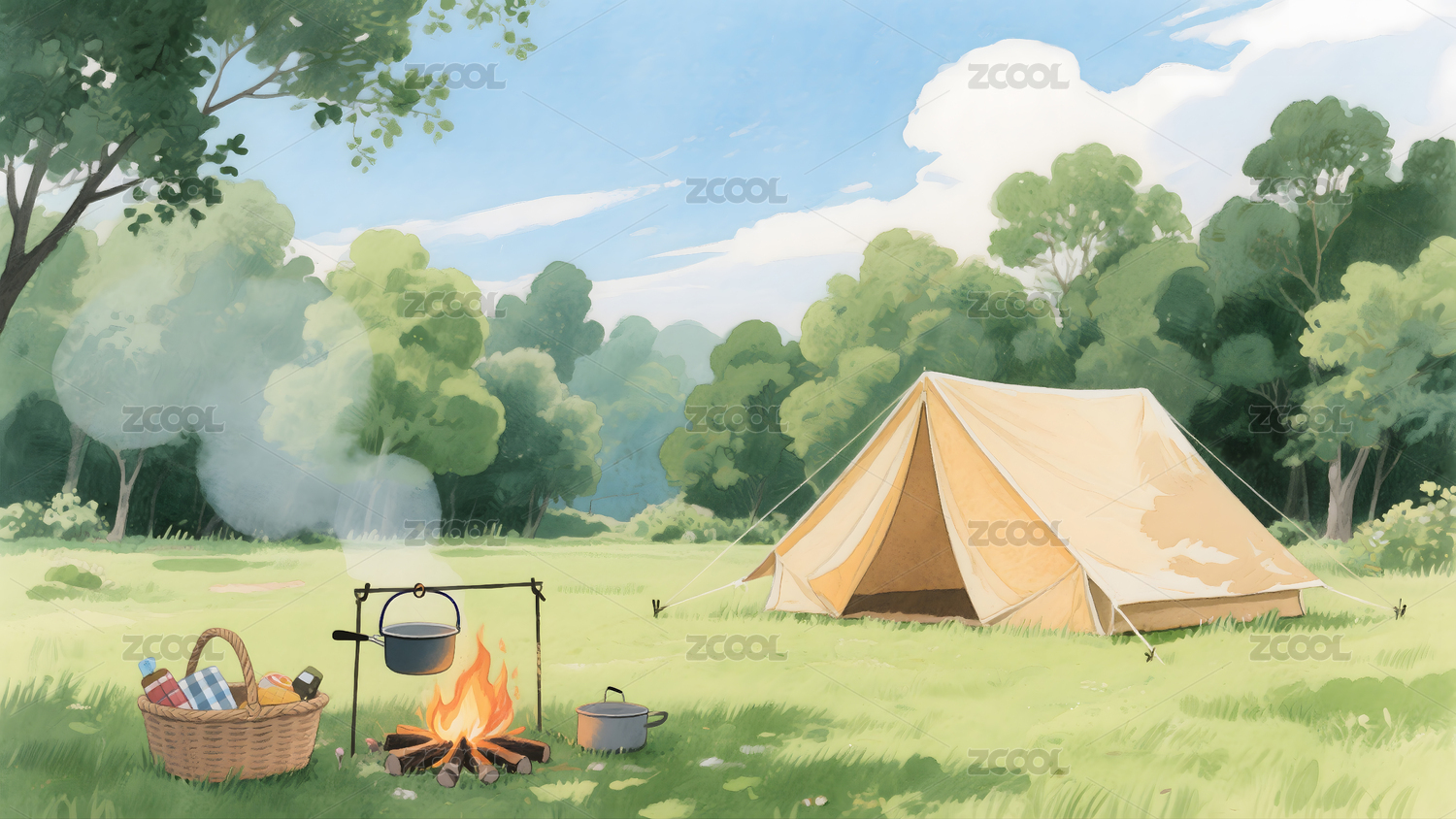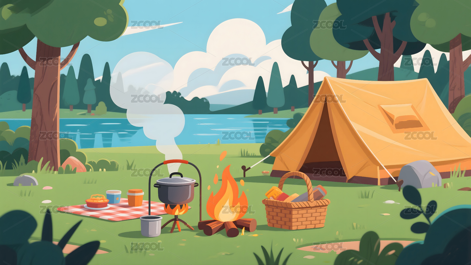 露营,篝火,帐篷,野餐,户外,炊具,旅行,休闲,自然,草地