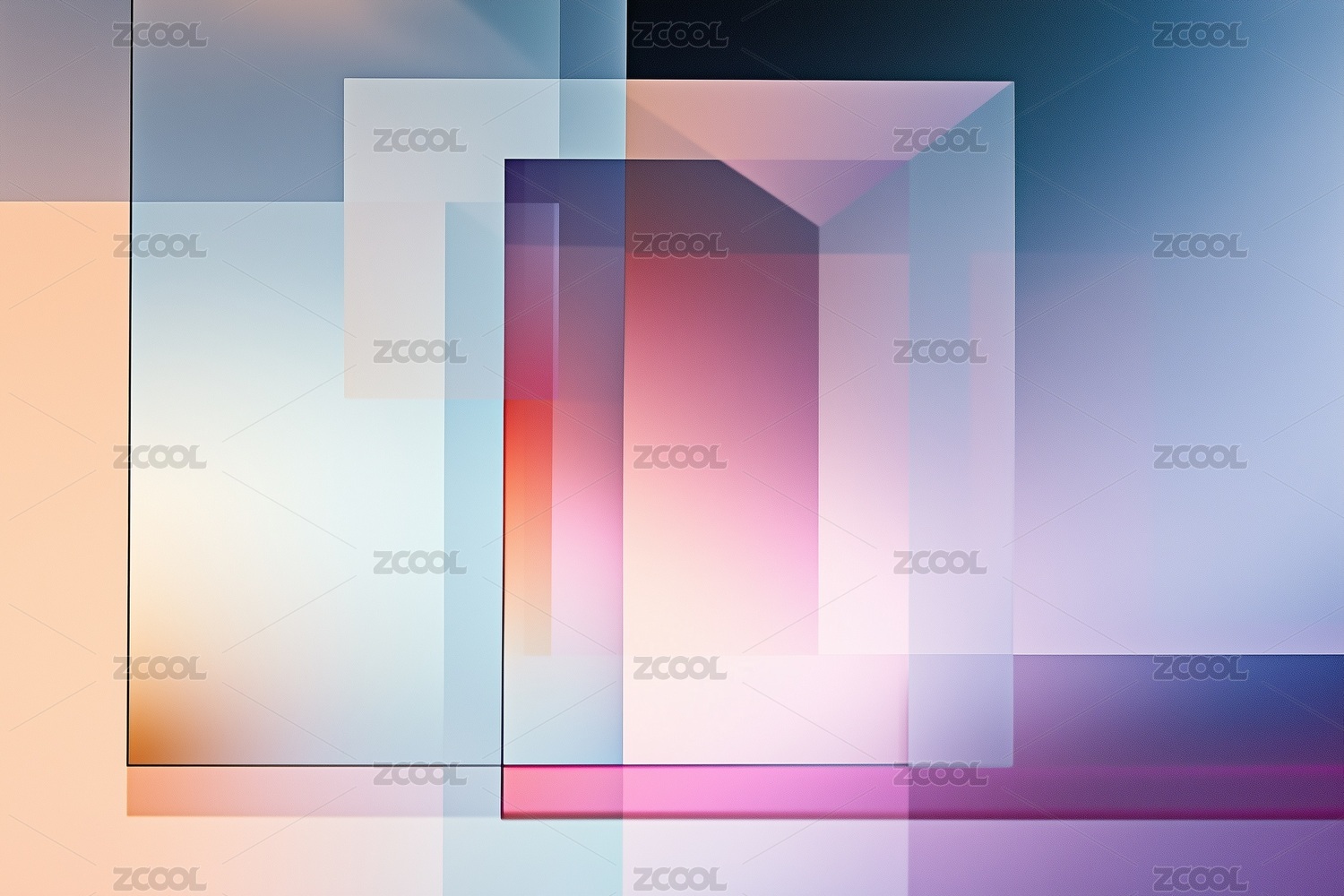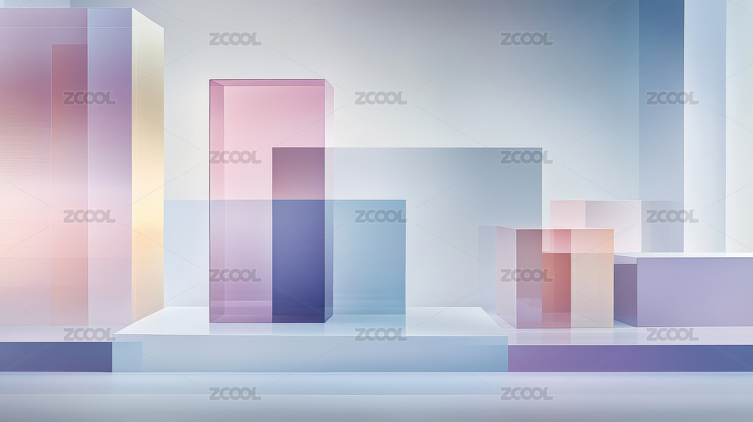 粉蓝红几何块交织呈现简约艺术的空间视觉