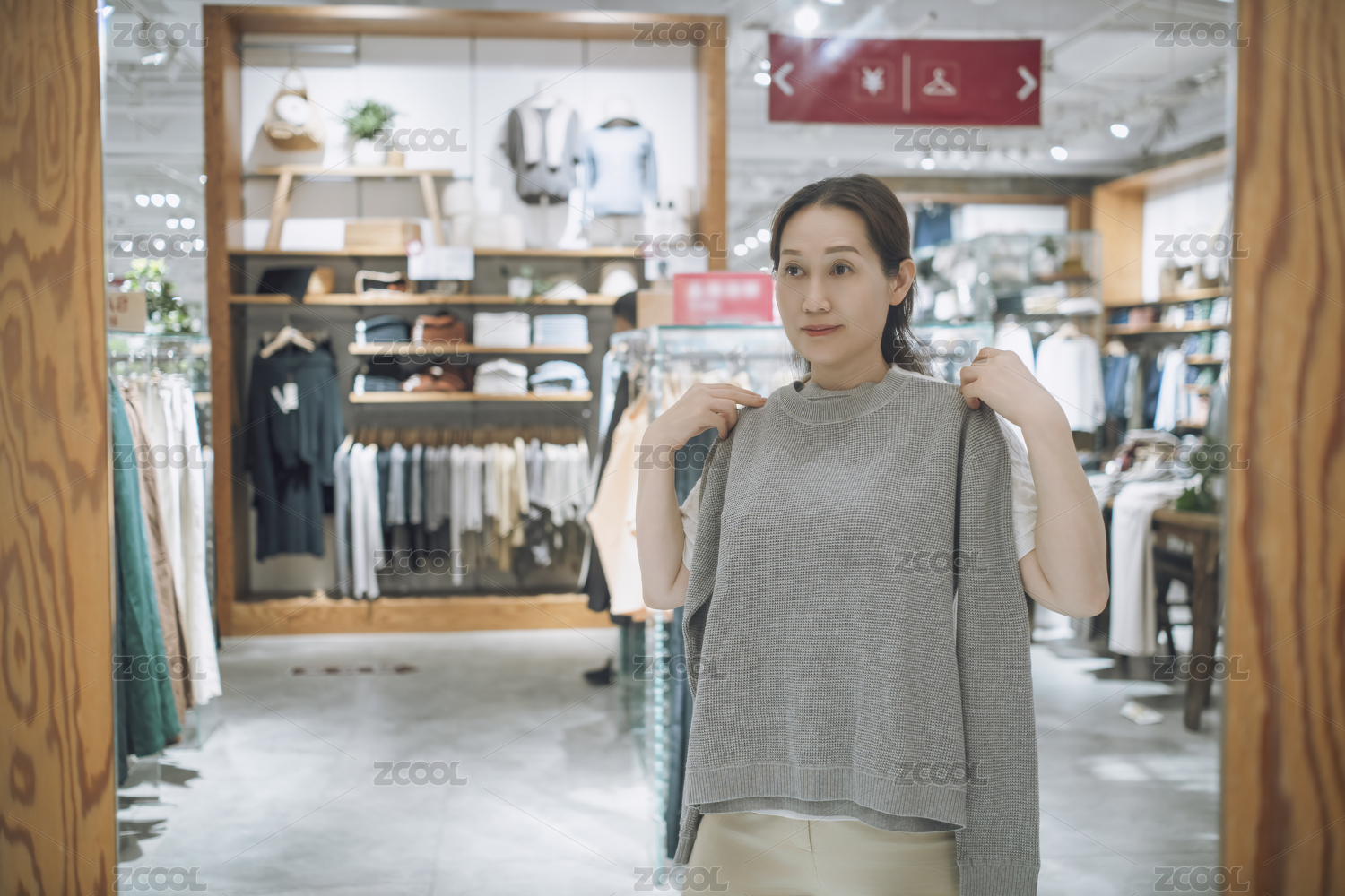 女子,挑选,衣物,服装店,购物,服装,零售,商场,货架,陈列